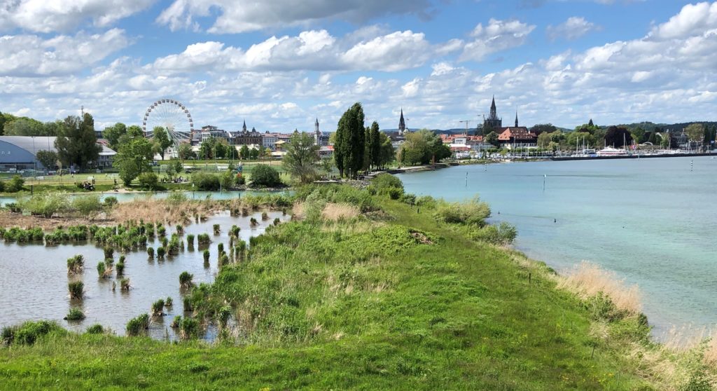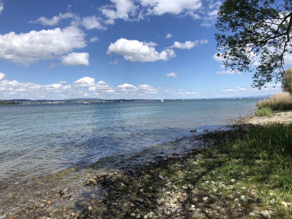 In Konstanz fahren wir über die Schweizer Grenze – der Zoll interessiert sich nicht für uns. Die Warteschlange für den Vignettenkauf ist jedoch lang und der Parkplatz klein und eng, also schnell weiter. Für die Mittagspause steuern wir gleich darauf einen Parkplatz in Kreuzlingen an (Seestraße 13) und parken wunderbar in erster Reihe am Wasser (für 2 CHF pro Stunde). Ich habe morgens noch einen Kartoffelsalat vorbereitet. Dazu gibt es Maultauschen. Die Kids erkunden in der Zwischenzeit den angrenzenden Park und riesigen Spielplatz. Nach dem Mittagessen spazieren wir durch diesen Seepark, vorbei am Spielplatz und dem Wildgehege und zurück am Wasser entlang. Auf einer Bank an der Schiffanlegestelle, genießen wir zum Abschluss noch Kaffee, Streuselkuchen und Sofias selbstgemachte Milchschnitten.