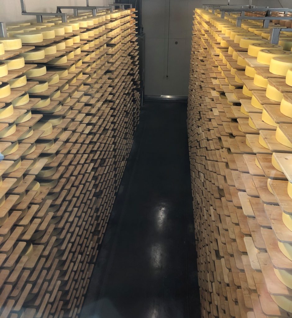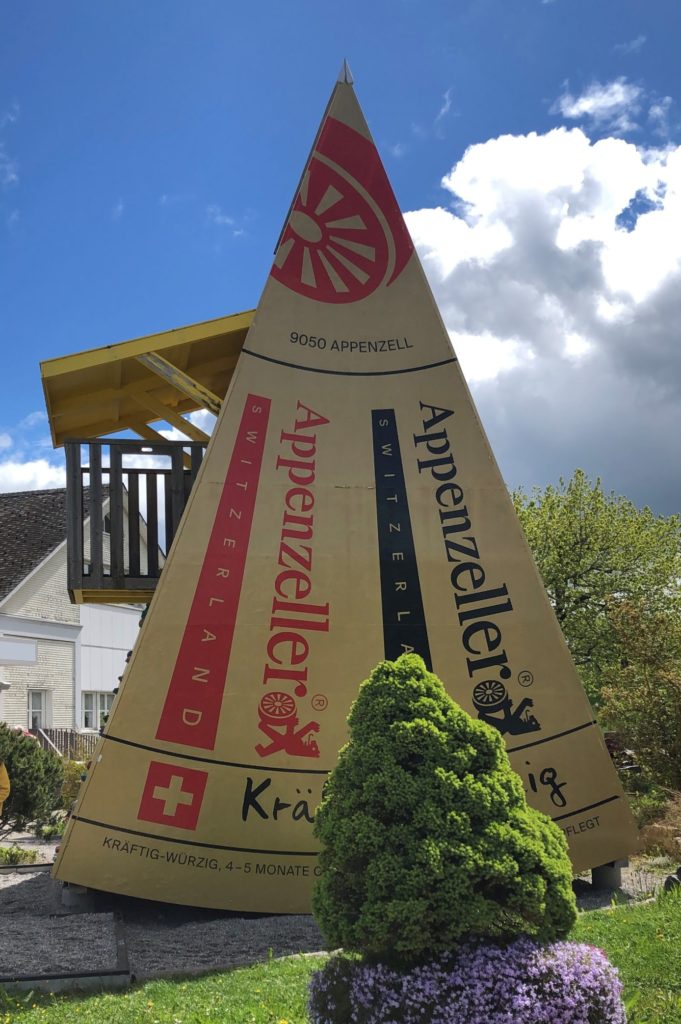 Aber erstmal fahren wir ins Appenzeller Land nach Stein (Dorf 711) zur Appenzeller Schaukäserei. Für 28 CHF (Familienkarte) besichtigen wir den Schauraum und bekommen 5 Würfel Appenzeller Käse in verschiedenen Reifegraden zum Probieren – lecker. Die Produktion und die große Lagerhalle, wo die Käselaibe vollautomatisch gewendet werden, ist sehr interessant. Die Ausstellung ist allerdings kleiner als gedacht und wir sind schnell durch. Luki bekommt noch einen aufblasbaren Käselaib als Geschenk und wir kaufen im Shop natürlich auch noch Käse (kräfig-würzig schmeckt uns allen am besten). Gut, dass wir so früh dran waren, mittlerweile ist eine Warteschlange am Eingang.