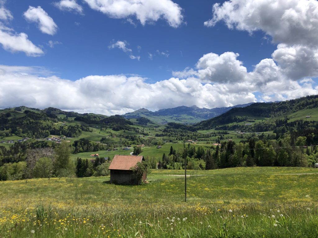 Dann ist es aber Zeit einen Übernachtungsplatz zu suchen. So richtig überzeugt uns nichts. Letztendlich entscheiden wir uns für einen Parkplatz in ländlicher Idylle in Mettmenstetten (Wissenbach 11) – auf den ersten Blick nur ein Schotterplatz, auf den zweiten Blick (als wir erstmal geparkt haben) aber wirklich gut und vor allem ruhig gelegen und kostenlos.