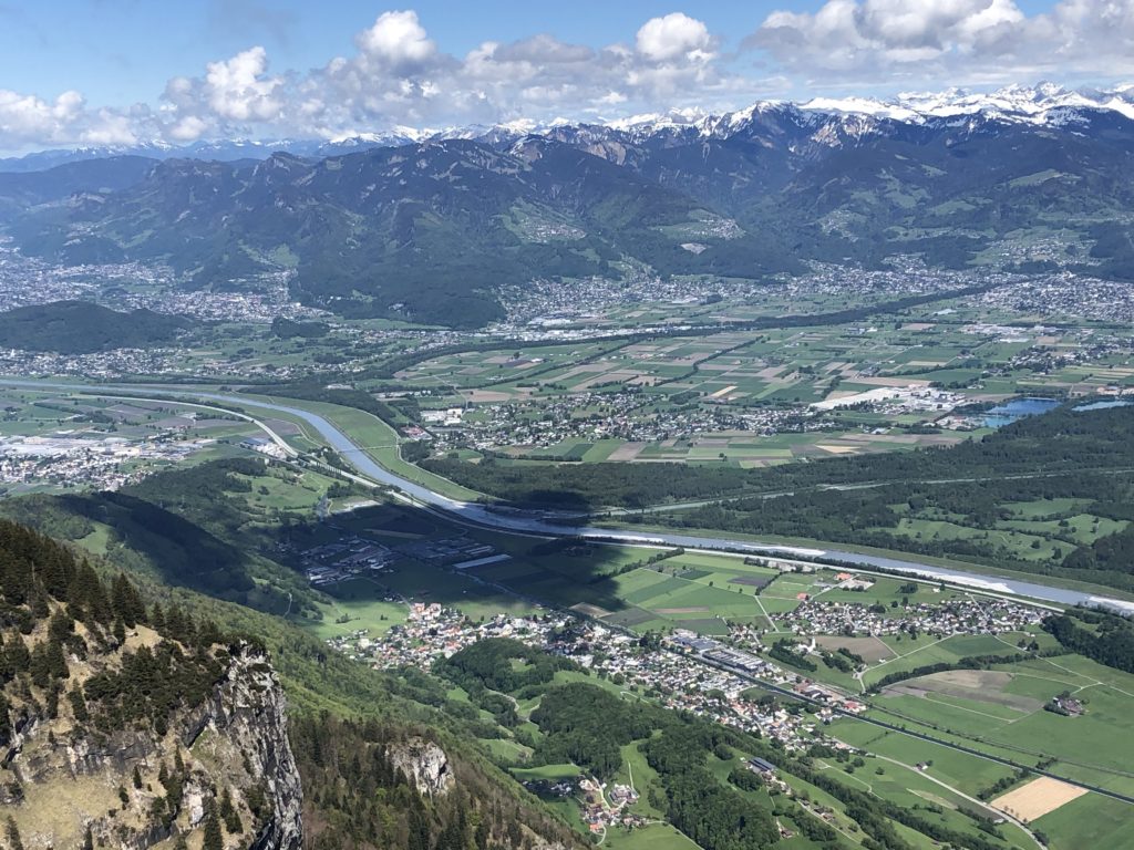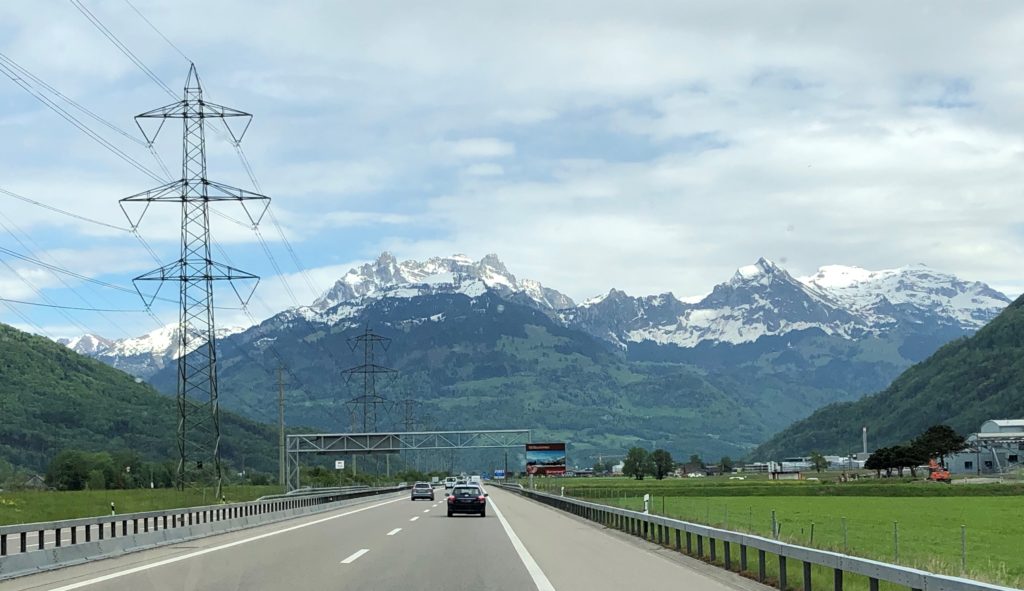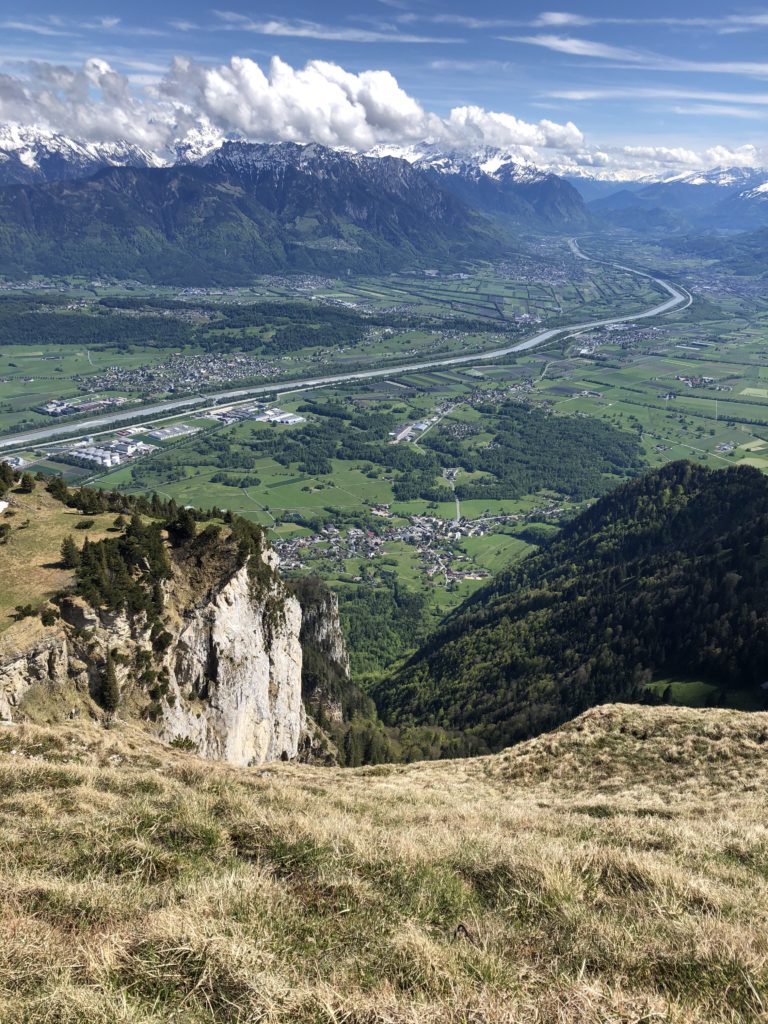 Weiter geht es nach Süden Richtung Liechtenstein. Das Navi schickt uns mal wieder über ein enges Sträßchen – wir sind froh, irgendwann wieder die Hauptstraße zu erreichen. Unterwegs schauen wir uns einen kostenlosen Parkplatz in Buchs neben einem See an. Es handelt sich um einen großen Schotterplatz, der zwar eine schöne Aussicht hat, aber von vielen Autos bevölkert wird und neben der Straße liegt. Deshalb machen wir hier nur eine Kaffeepause und schauen dem Riesenrad zu, welches hier aufgebaut ist. Um mitzufahren ist es viel zu ungemütlich, hier bleiben wollen wir auch nicht, also fahren wir noch wenige Kilometer weiter nach Liechtenstein.