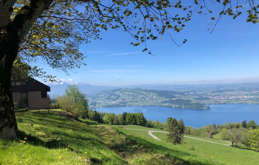 Außer dem Zwitschern der Vögel war hier absolut gar nichts zu hören und wir haben wunderbar geschlafen. Die Sonne strahlt vom Himmel und wir freuen uns (fast alle 😊) auf unsere Wanderung auf dem Zugerberg. Davor entleeren wir auf dem Autobahnrastplatz Estelberg noch kurz die Toilette.