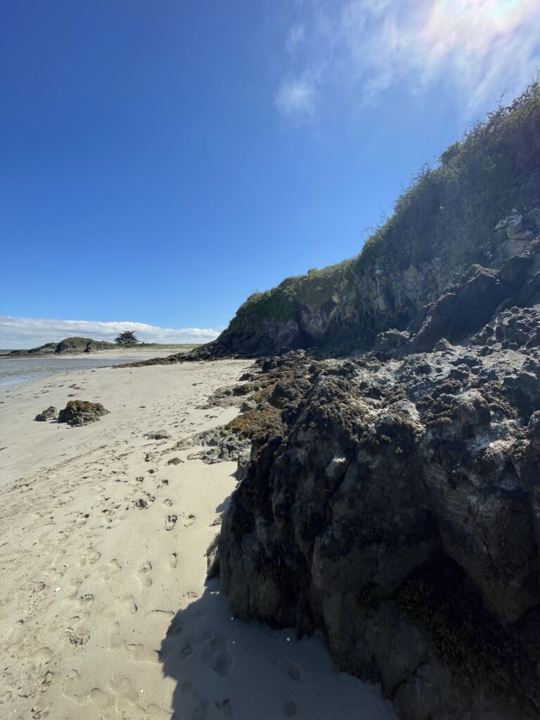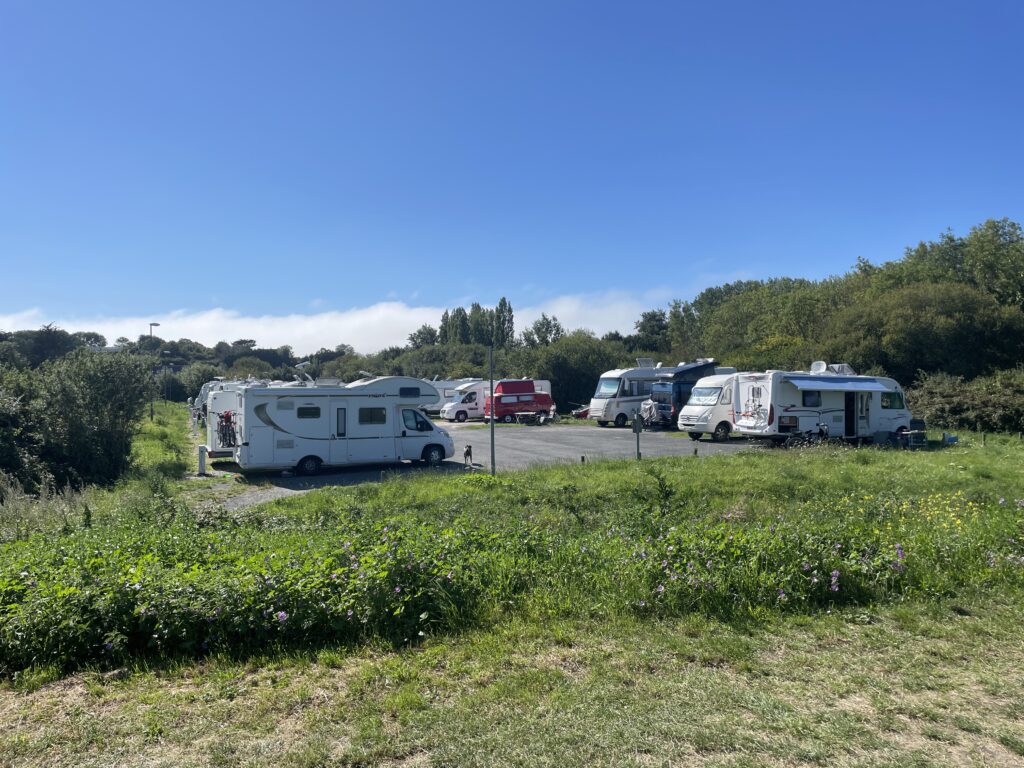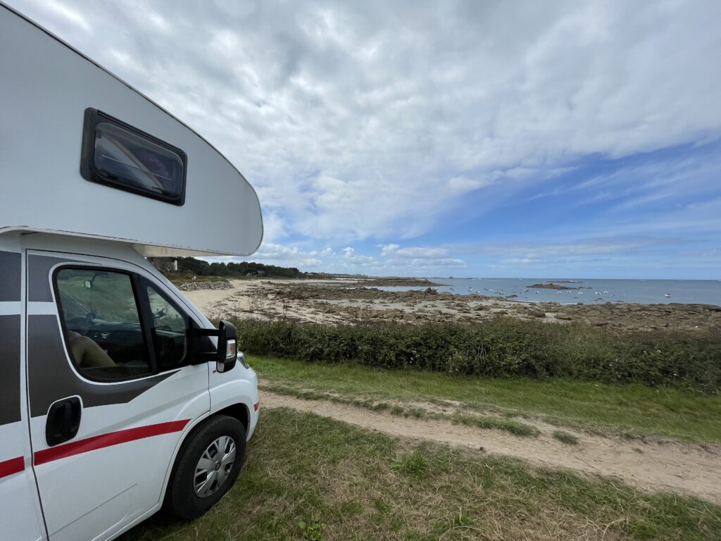 Nach einem Stopp beim Bäcker geht es für uns weiter nach St-Jacut-de-la-Mer. Hier gibt es einen Camping Municipal, der allerdings voll belegt ist. Am Wohnmobil Stellplatz nebenan ergattern wir aber noch ein freies Plätzchen. Nach dem Mittagessen geht es dann endlich ans Meer.