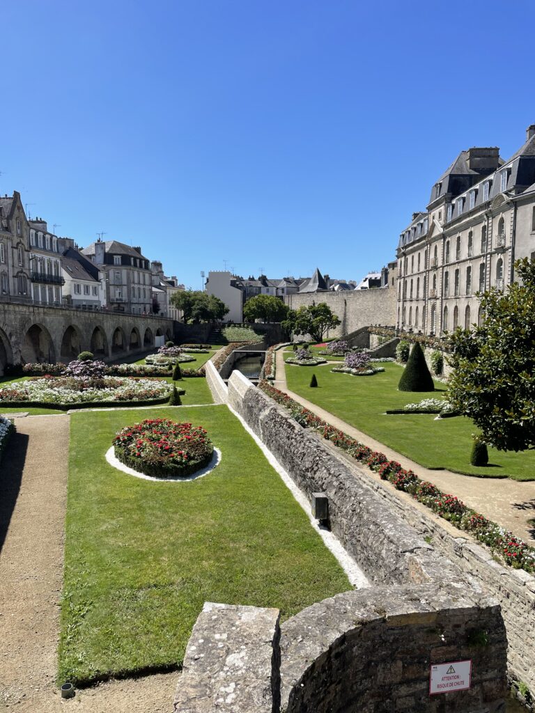 Nur das Plätschern des Regens hat unsere Nachtruhe gestört. Durch die Bäume ist es morgens noch etwas schattig und nass, aber schon angenehm warm. Nach dem Frühstück nutzen wir noch die gute Ver- und Entsorgungsstation und fahren dann weiter nach Vannes.