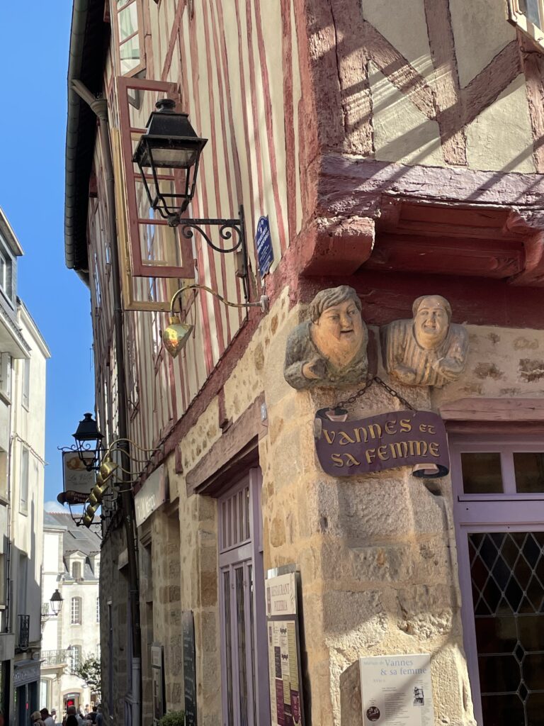 Die andere Drei waren zwischenzeitlich nochmal mit dem Petit Train unterwegs. In Vannes hat sich dies aber nicht wirklich gelohnt, zumal der Zug übervoll belegt wurde. Lieber schlendert man zu Fuß durch die Gassen und kann an der Ecke die Skulptur von Monsieur Vannes und seiner Frau (Vannes et sa famme) entdecken.