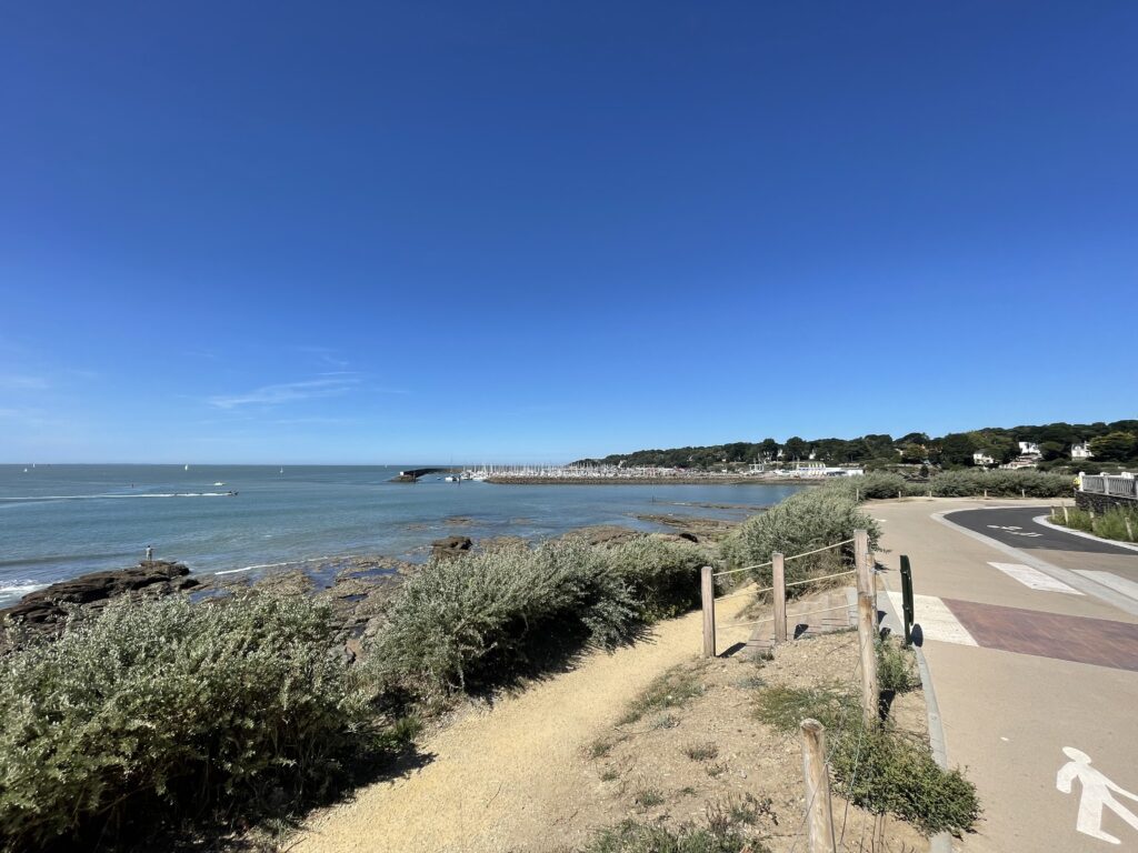 Danach machen wir uns zu Dritt wieder auf zum Pool, während Micha und Jasmin noch kurz beim örtlichen Supermarkt einkaufen. Danach schwingt sich Micha auf sein Rad und fährt auf einem schönen Radweg Richtung Pornic. Heute haben wir richtiges Badewetter, deshalb wollen wir heute auch noch an den Strand. Hochwasser ist allerdings erst um 20 Uhr, vor Spätnachmittag brauchen wir also gar nicht starten. So beschließen wir mittags nur zu vespern und abends dafür Pizza zu holen und am Strand zu essen.