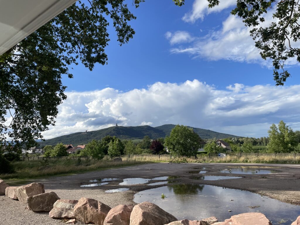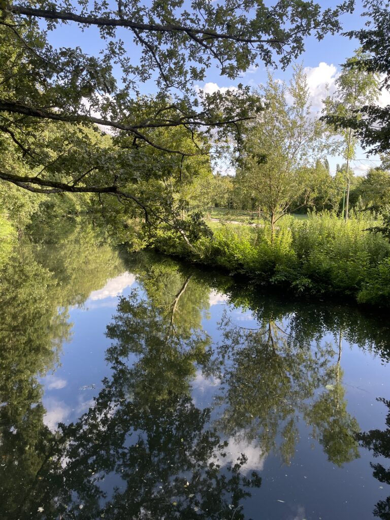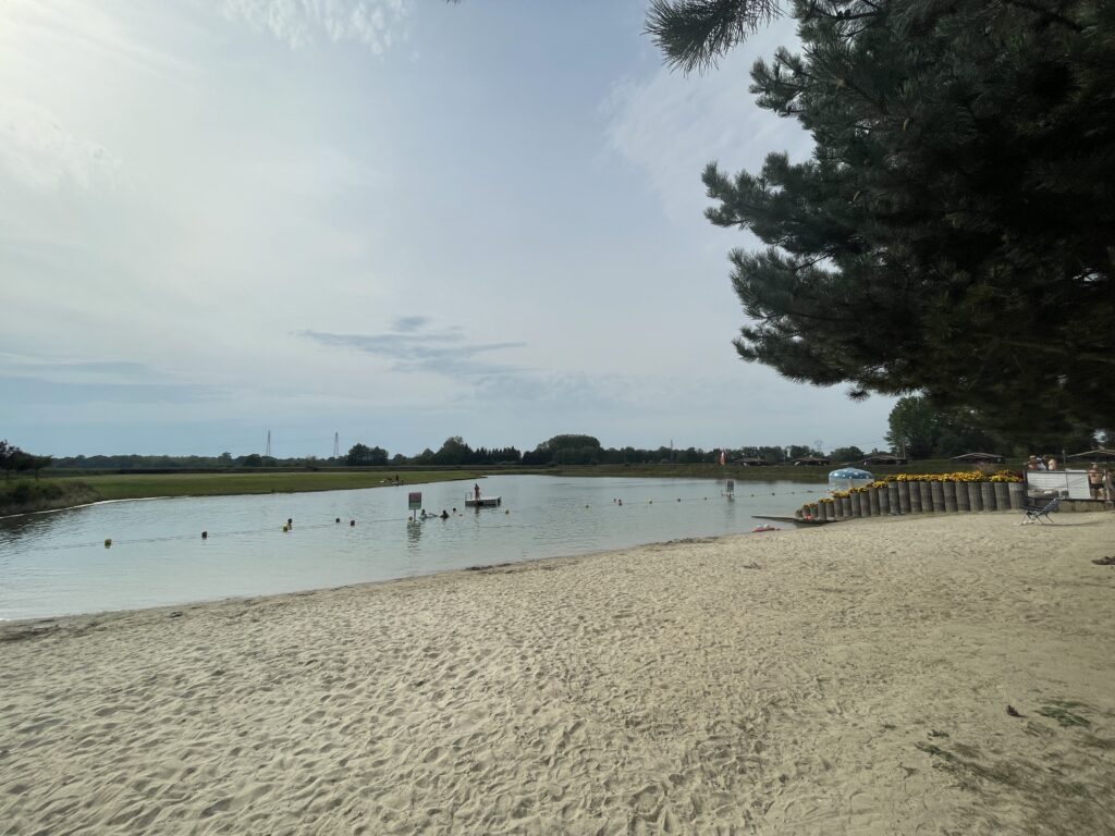 Wir übernachten heute zum letzten Mal in Frankreich und wählen dafür den Campingplatz „La Ferme des Tuileries“ (1 Rue des Tuileries, Rhinau) im Elsass. Für 39,70€ bekommen wir einen Womo-Stellplatz mit Rasenfläche. Der Campingplatz ist schön begrünt, hat Minigolf, Volleyball- und Fußballfeld und das Beste: es gibt nicht nur einen Pool (Badekappenpflicht!) und Rutschen, sondern auch einen kleinen See zum Schwimmen. Also Strom angehängt, Stühle raus und dann ab ins Wasser bei wieder schwülen 32°C. Richtig abkühlen kann man sich im See nicht, das Wasser ist warm nach der tagelangen Hitze, aber tut trotzdem gut. Rund um den See gibt es jede Menge Platz zum Liegen auf Sand oder Gras und auf Wunsch unter Bäumen. Gefällt uns alles sehr gut, zumal für den günstigen Preis.