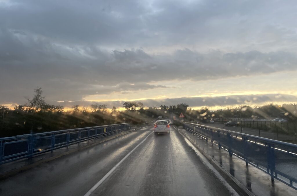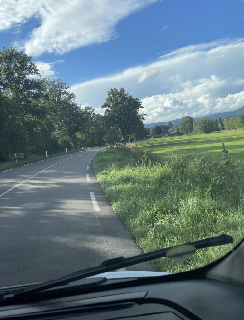 Das war die wärmste Nacht unseres ganzen Urlaubs und wir konnten endlich mal mit allen Fenstern offen schlafen. Morgens ist es mal wieder stürmisch, die Sonne setzt sich aber schnell durch. Heute ist der heißeste Tag der Woche gemeldet. Obwohl wir ausschließlich Autobahn fahren und nur einen kurzen Stopp für einen Mittagsnack machen, kommen wir erst um 16 Uhr am Tagesziel an.