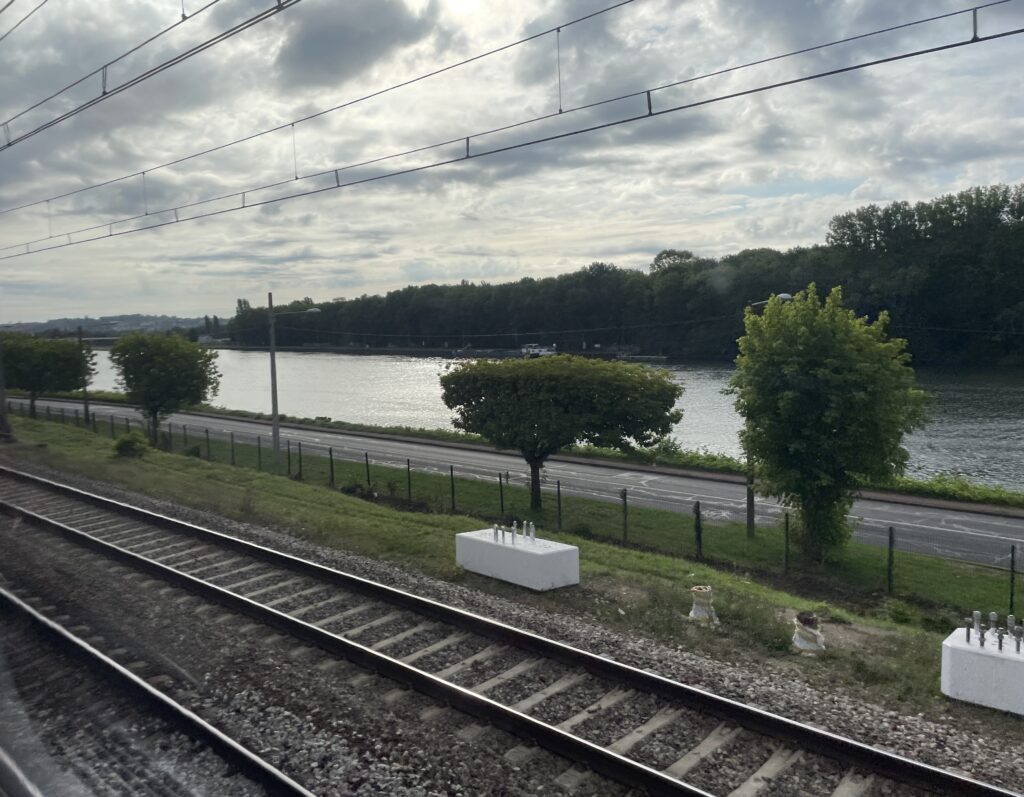In ca. 15 Gehminuten erreicht man den Bahnhof von Saint-Geneviève-des-Bois. Das erste Stück führt dabei schön am Fluss Orge entlang. Wir kaufen uns Tickets am Automaten (10€ Hin und Rück p.P., Luki 5€) und nehmen den nächsten Zug (RER C, fährt ca. jede halbe Stunde). Normalerweise könnten wir ohne Umsteigen bis zum Eiffelturm fahren oder unterwegs an eine der vielen Haltestellen im Stadtzentrum aussteigen (das war auch einer der Gründe, diesen Platz auszusuchen). Leider ist die Bahnstrecke ab Gare de l’Austerlitz aktuell aber wegen einer Baustelle gesperrt, daher müssen wir dort aussteigen und mit der Metro weiter.