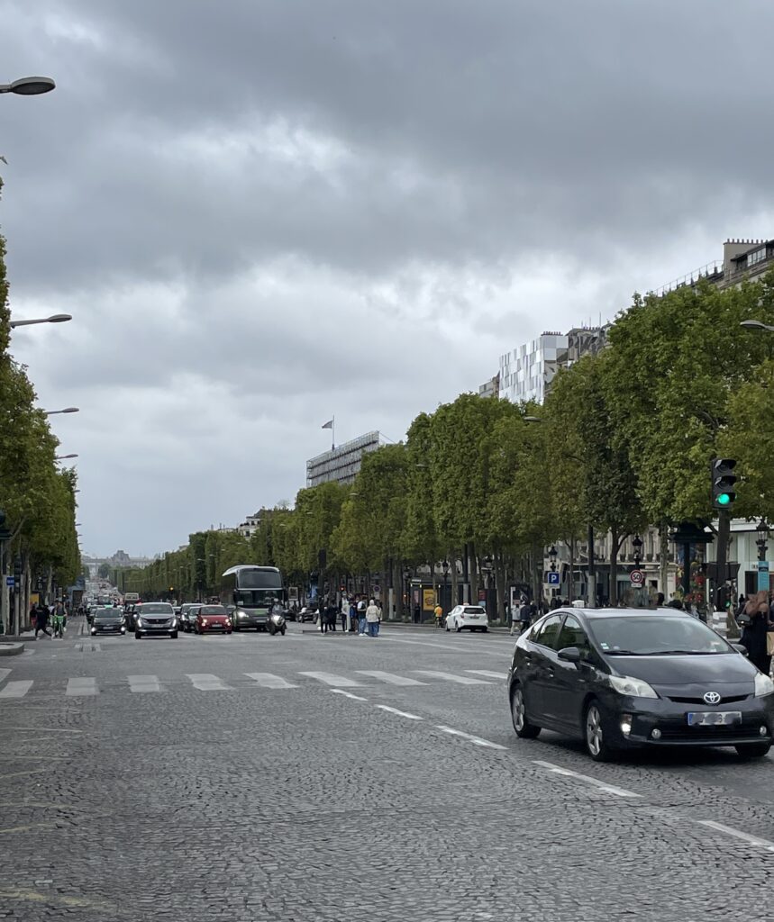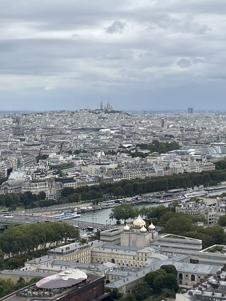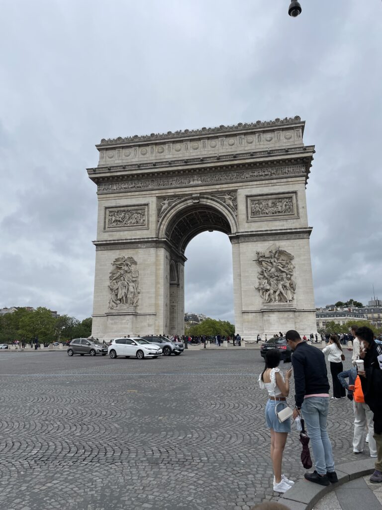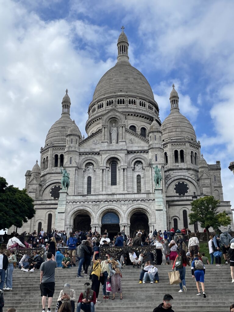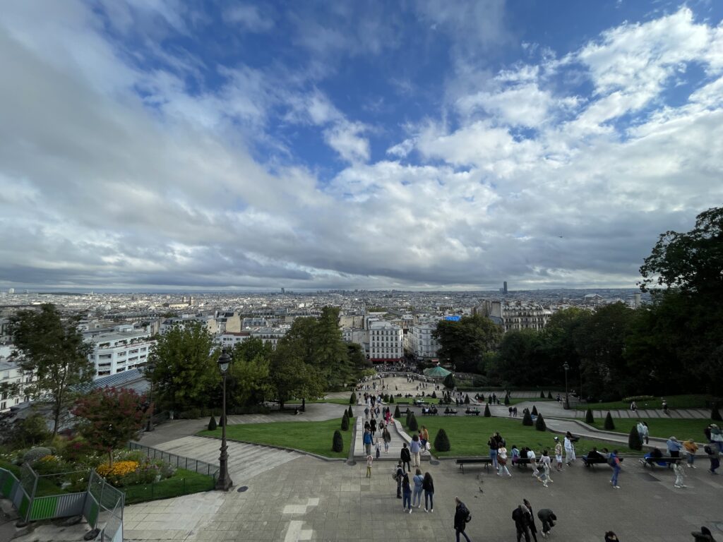 Wir flanieren entlang des großen Parks und suchen uns ein Restaurant zum Mittagessen. Anschließend fahren wir mit der Metro zum Trocadéro, wo man nochmals einen großartigen Blick auf den Turm hat. Weiter fahren wir zum Arc de Triomphe und spazieren anschließend über die Prachtstraße Champs-Élysées. Leisten können wir uns hier natürlich nichts, aber auch so sind die vielen Geschäfte mit Türstehern wie Louis Vitton interessant. Leider fängt es schon wieder an zu regnen, also flüchten wir in die Metro und fahren weiter zur Station Anvers am Fuße der Basilique du Sacré-Coeur de Montmartre, wo es zum Glück wieder trocken ist.
