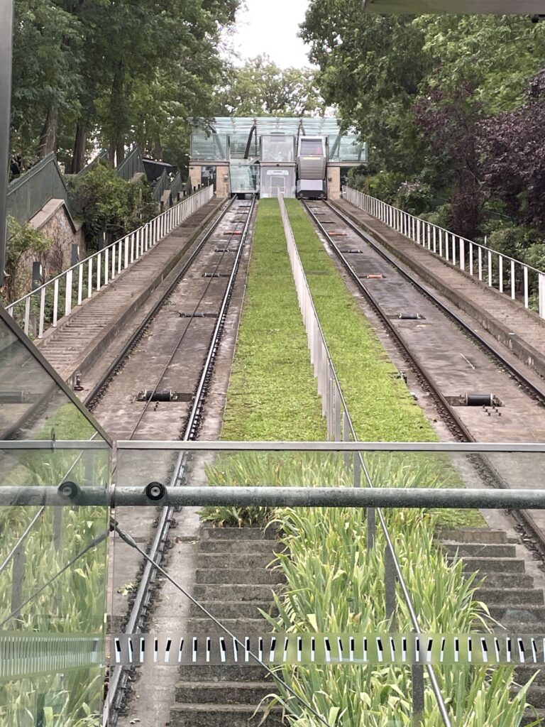 Nach einem leckeren Eis fahren mit der historischen Seilbahn Funiculaire (im Metroticket inklusive) bergauf zur Basilika. Wir treffen unsere Freunde, die heute mit dem Zug angekommen sind und spazieren gemeinsam zur Place du Tetre mit ihren Cafés und talentierten Künstlern.