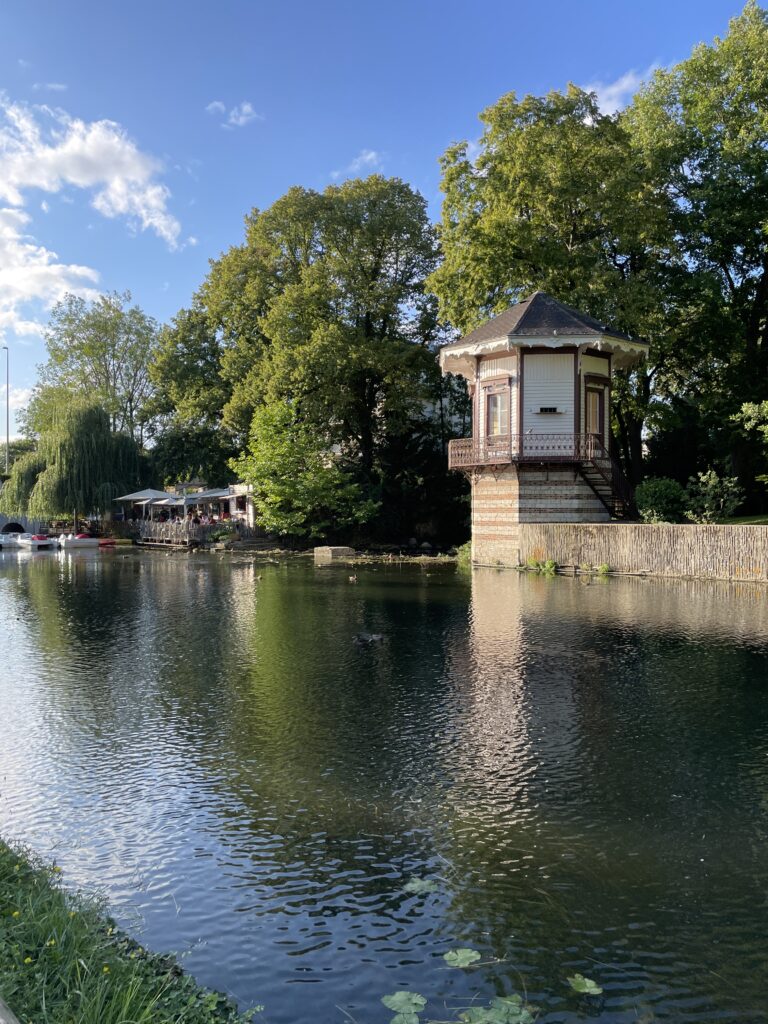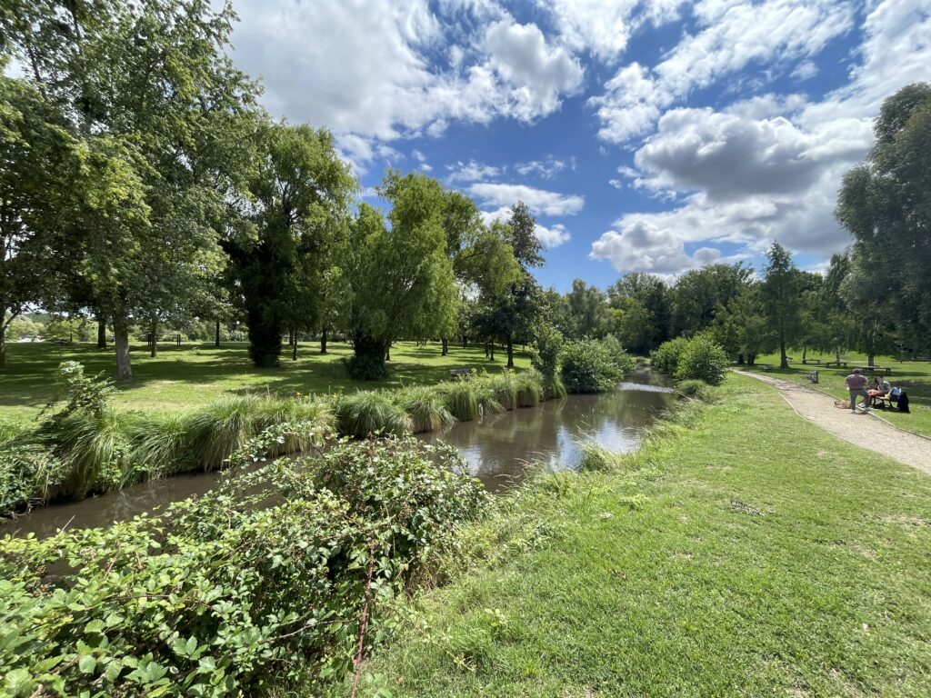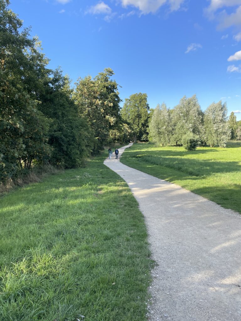 Nach einem kurzen Tankstopp suchen wir uns ein Plätzchen für das Mittagessen und werden in Étampes fündig (Île de Loisirs d’Étampes, Avenue Charles de Gaulle). Im großen Park gibt es ein Freibad, einen See, Skateranlagen und verschiedene Angebote für Kinder. Leider ist keine Sonne da und der Wind ist eisig, also können wir wieder nicht raussitzen. Nach dem Essen vertreten wir uns etwas die Beine und die Kids erkunden die Umgebung nochmals mit dem E-Scooter.
