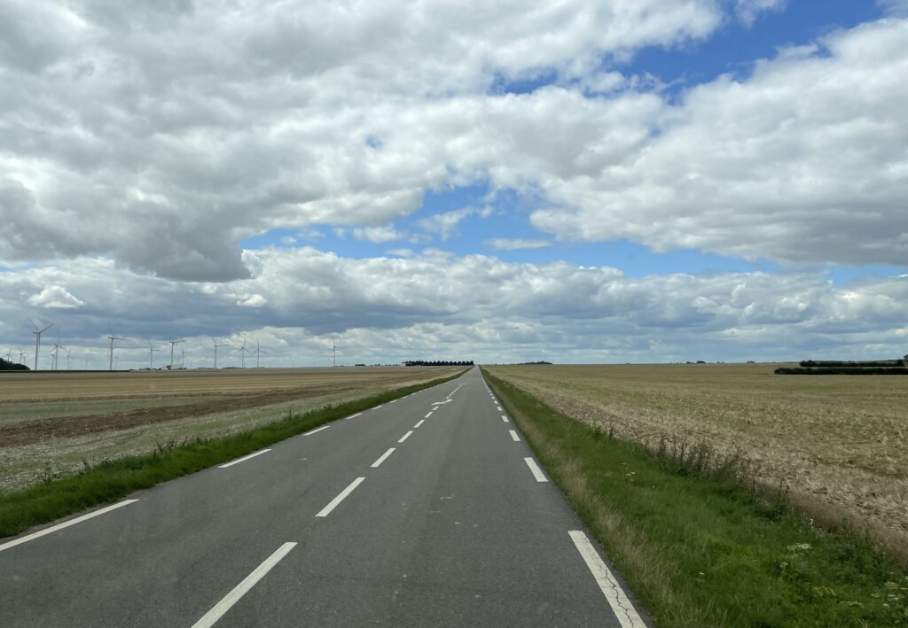 Fast die Hälfte der Strecke nach Paris liegt noch vor uns (280km). Die Bundesstraße ist nicht durchgehend zweispurig ausgebaut und so geht es zum Teil schleppend hinter vielen LKW mit 50km/h quer durchs Land. Dafür fahren wir mautfrei. Links und rechts ist kilometerlang nichts anderes zu sehen als Felder und Windräder. Im Großraum Paris wird der Verkehr dann immer dichter und kurz vor dem Ziel die Straßen immer schmaler.