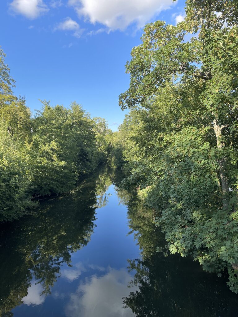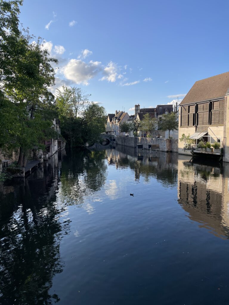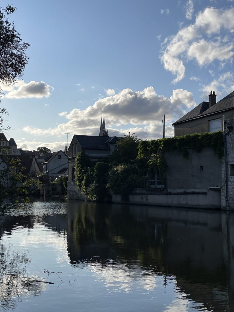 Weiter geht es nach Chartres. Wir parken am kostenlosen Womo-Stellplatz 2km außerhalb der Innenstadt (48.4327, 1.4958). Nach wahlweise Mittagschlaf oder Kartenspielen, um den Regen auszusitzen und anschließendem Vesper, machen wir uns auf Richtung Zentrum – wunderschön am Fluss Eure entlang. Immer im Blick: die Cathédrale Notre-Dame. Aber nicht nur diese ist sehenswert, das ganze Städtchen ist wunderschön. Gassen mit „echten“ Geschäften – kein Touristenramsch. Und es regnet nicht mehr.