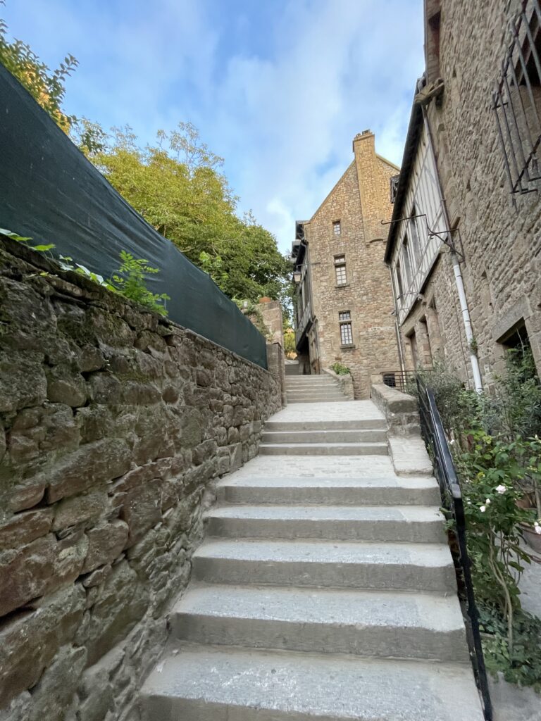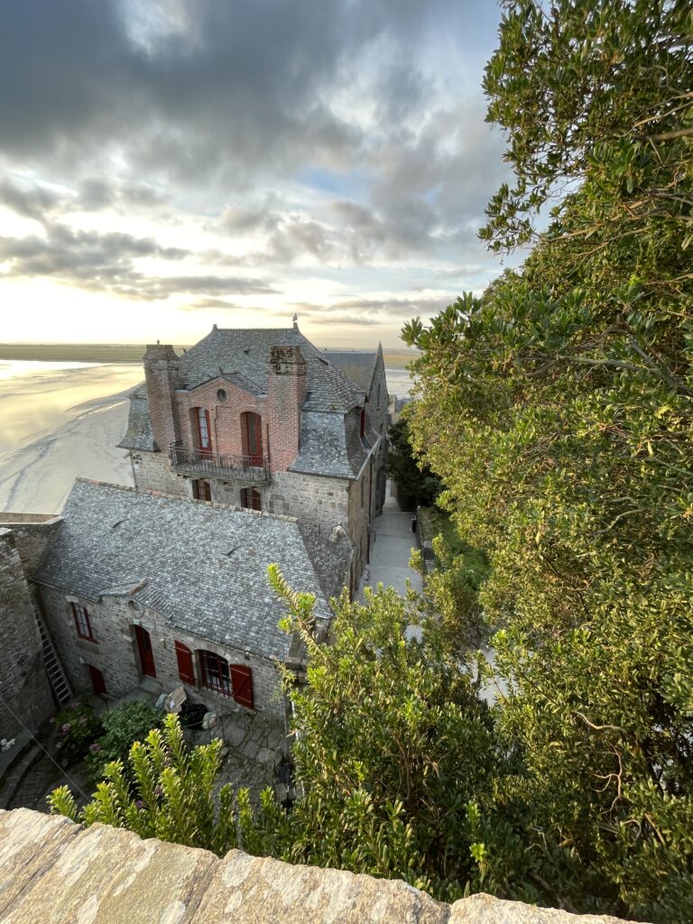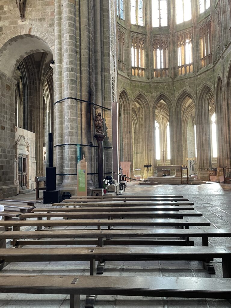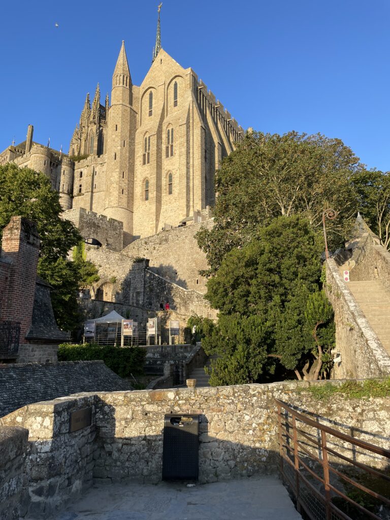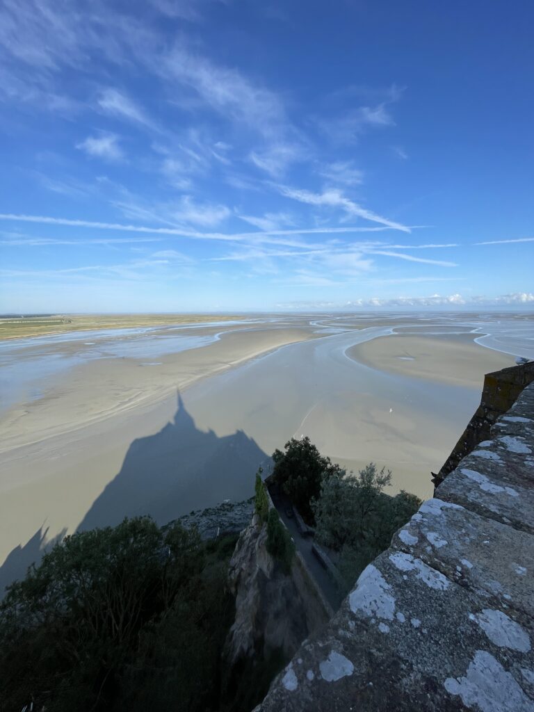 Zurück durch das Tor betrete ich nochmals die Insel und begebe mich zum Eingang der Abtei, die um 9 Uhr ihre Pforten öffnet. So langsam füllt es sich, ich bin aber relativ weit vorne in der Warteschlange und kann so gleich bei Öffnung mein Ticket kaufen (11€ – Vorausbuchung auch online möglich mit gesonderter Warteschlange). Die Besichtigung lohnt sich schon allein wegen der unglaublichen Aussicht. Aber auch die vielen Räume der Abtei, die Treppen und Säulengänge sind sehr schön – vor allem, wenn man so wie ich, fast alles noch für sich hat.