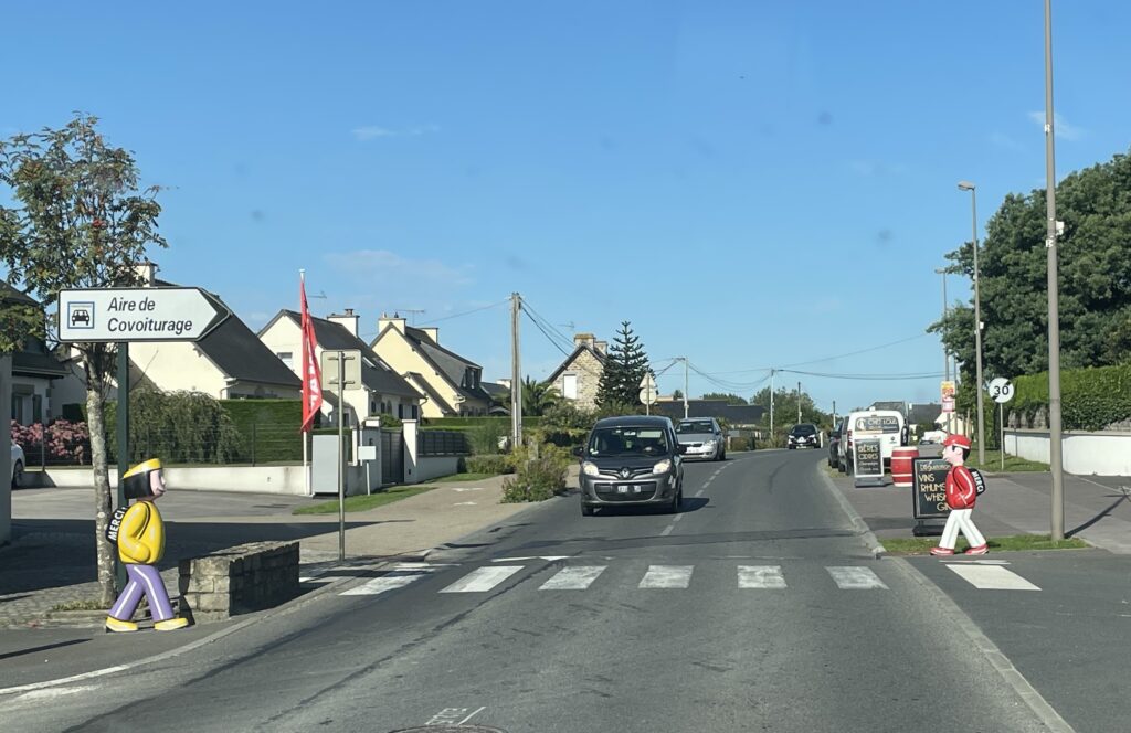 Wir schlafen lange. Nachts ist es ruhig, morgens fahren aber einige Autos vorbei und machen entsprechend Lärm. Um die Ecke ist ein Intermarché, dorthin verlagern wir unseren Standort zum Frühstück, da wir wieder nicht raussitzen können. Nachdem wir beim Bäcker waren und auch noch Vorräte aufgefüllt haben, geht es um halb 11 auf die letzte Etappe Richtung Meer.