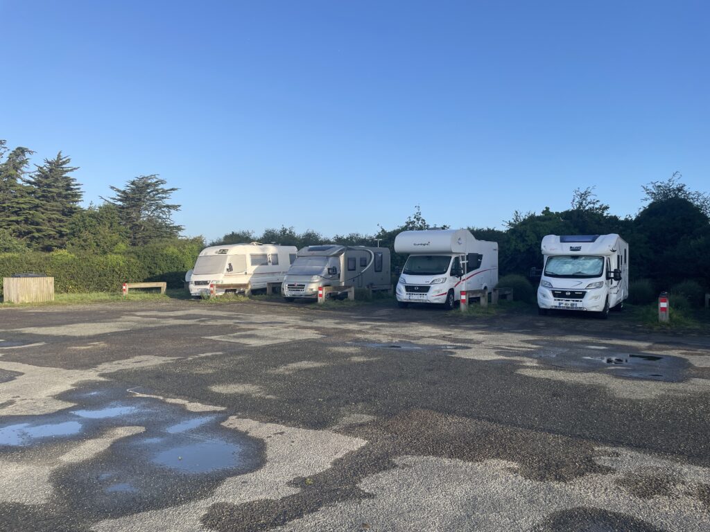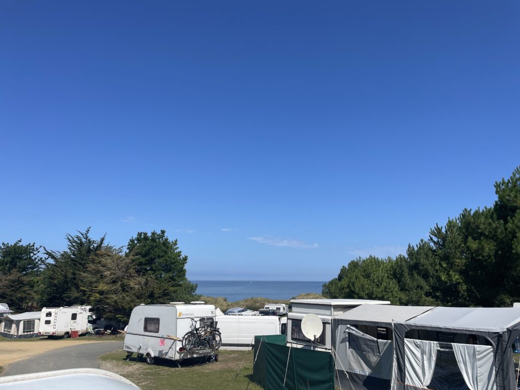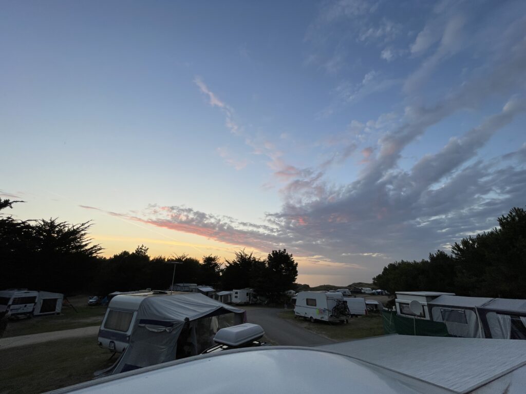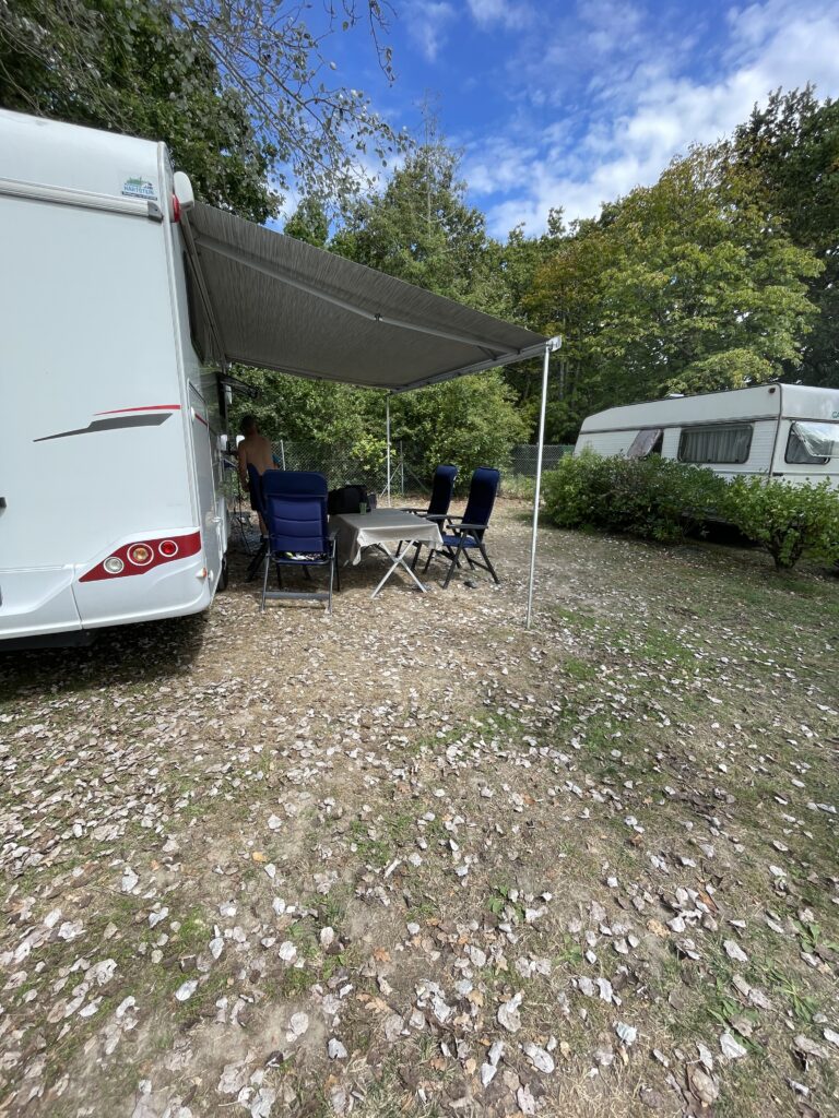 Die nächsten 3 Nächte werden wir nun auf dem Campingplatz „Chadotel les Ecureuils“ (24 Av. Gilbert Burlot, La Bernerie-en-Retz) verbringen, den wir wieder online vorgebucht haben. Wir bekommen unser Plätzchen am äußersten Rand des Platzes zugewiesen (G144). Von hier läuft man einige Minuten bergab bis zur Rezeption und dem Schwimmbad, hat dafür aber seine Ruhe – eigentlich, denn uns gegenüber hat sich eine Jugendgruppe in 2 Zelten niedergelassen.