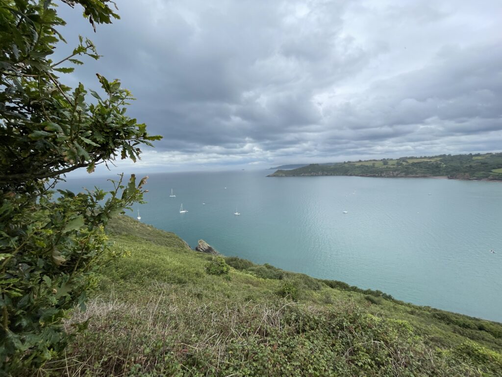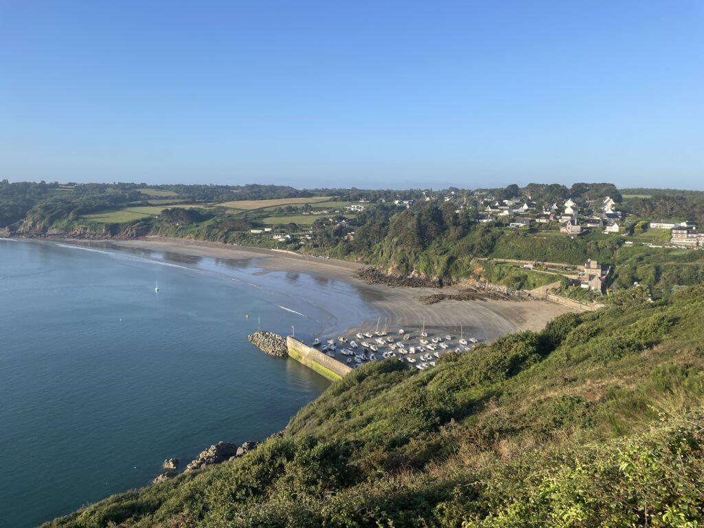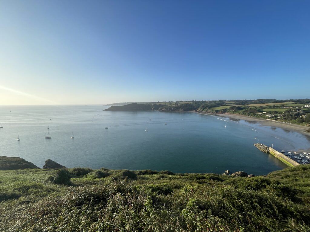 Hier oben hat man einen großartigen Blick auf die Bucht von Bréhec und das Meer. Es gibt Bänke, Picknicktische und Mülleimer. Ansonsten keine weiteren Dienstleistungen, aber dafür ist es ein offizieller Stellplatz und völlig kostenlos (max. 24h Aufenthalt). Leider können wir nicht noch wie geplant ein Stück auf dem Küstenwanderweg (führt auch hinter zur Bucht) spazieren, da es schon wieder anfängt zu regnen und bis zum Abend auch nicht mehr aufhört.