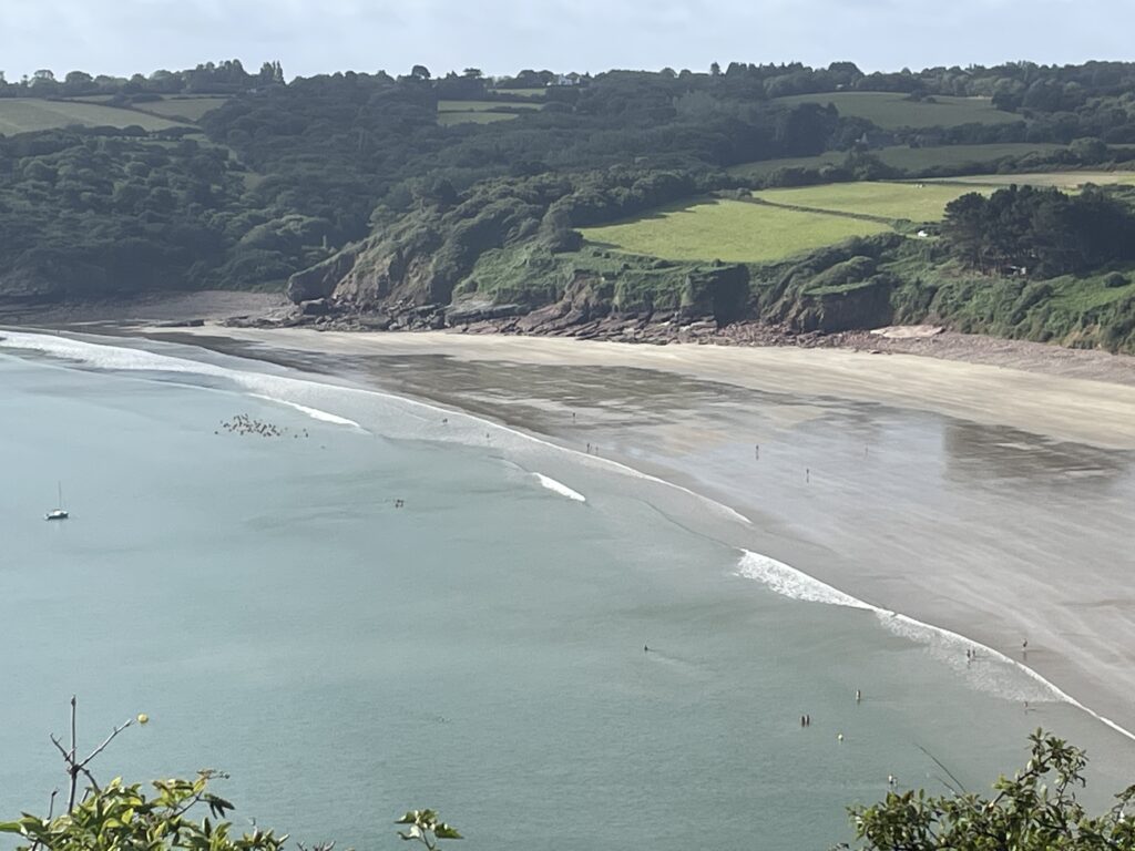 Erst nach 2 Stunden finden wir ein freies Plätzchen bei Lancieux (48.6169, -2.1420) mit Blick auf den Hafen. Eine Treppenweg führt hinab zum Strand , wo die Boote wegen Ebbe alle auf Grund liegen. Das stört uns aber nicht – wir sind froh, angekommen zu sein und genießen unseren ersten Mittag am Strand, den Sand zwischen den Füßen und später unser Abendessen auf der Picknickdecke.