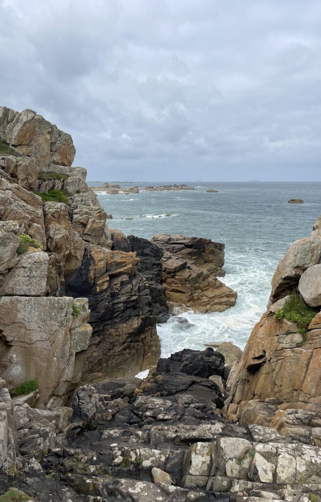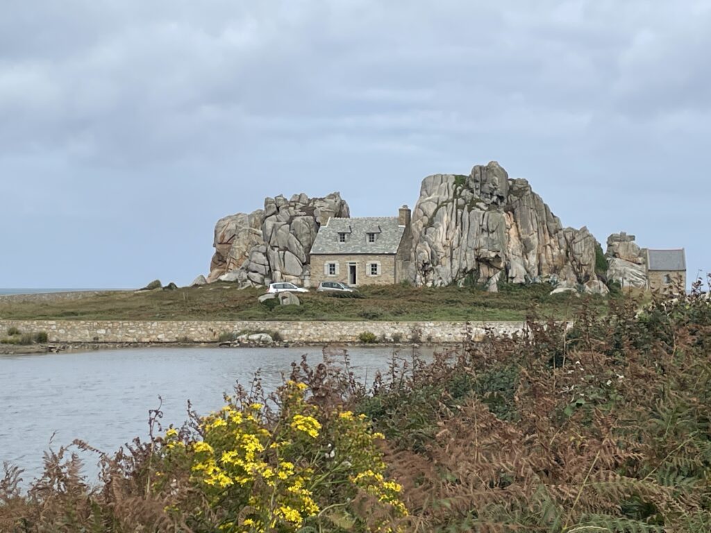 Das Kreischen der Möwen weckt uns und die Sonne scheint wieder – der kalte Wind bleibt uns allerdings erhalten. Um kurz nach 10 Uhr brechen wir auf und fahren weiter zum Parkplatz am Maison du Gouffre bei Plougrescant. Hier gibt es einen separaten Parkplatz für Wohnmobile (48.866084, -3.230749). In wenigen Minuten erreicht man von hier das 1861 erbaute und augenscheinlich noch bewohnte `Haus zwischen den Felsen` – ein beliebtes Fotomotiv in der Bretagne. Mehr beeindruckt als das Haus haben uns aber die Felsformationen und Klippen, wo sich trotz Ebbe die Wellen brechen. Bei unserer Rückkehr ist dann schon fast der ganze Parkplatz belegt – leider auch mit PKW, die scheinbar nicht in der Lage sind, den nebenliegenden Höhenbeschränkten Parkplatz zu nutzen. Wir kochen hier noch und fahren dann zum Campingplatz „Domaine Trestaou“ (89 Av. du Casino, Perros-Guirec).