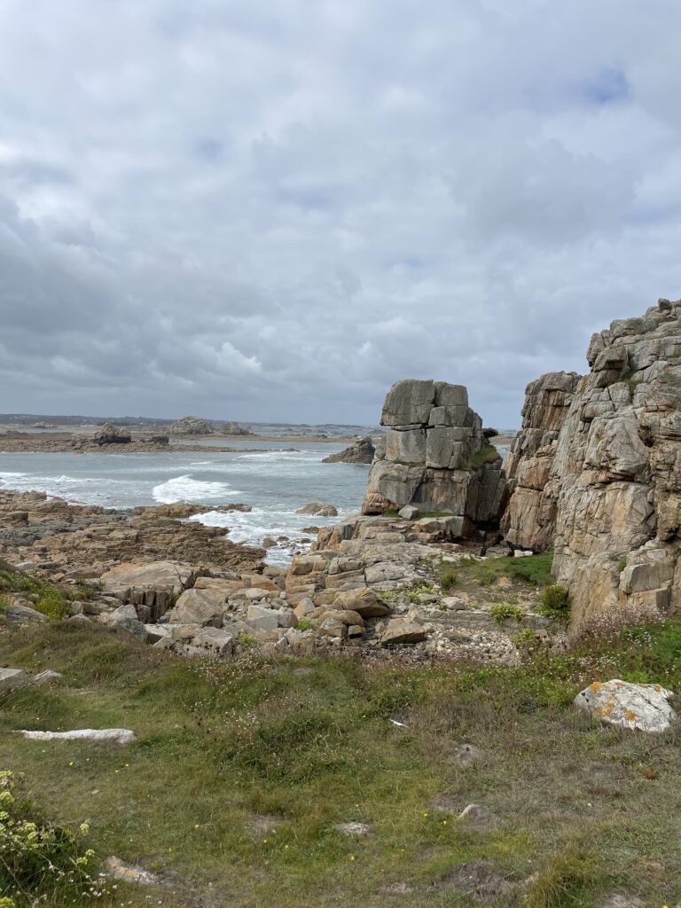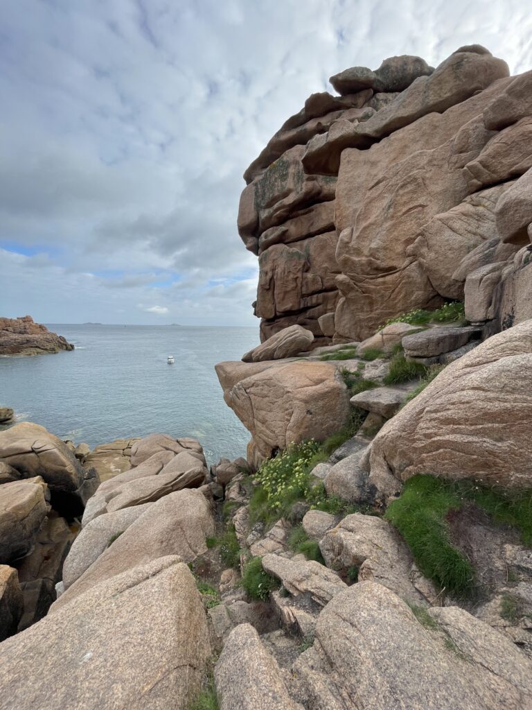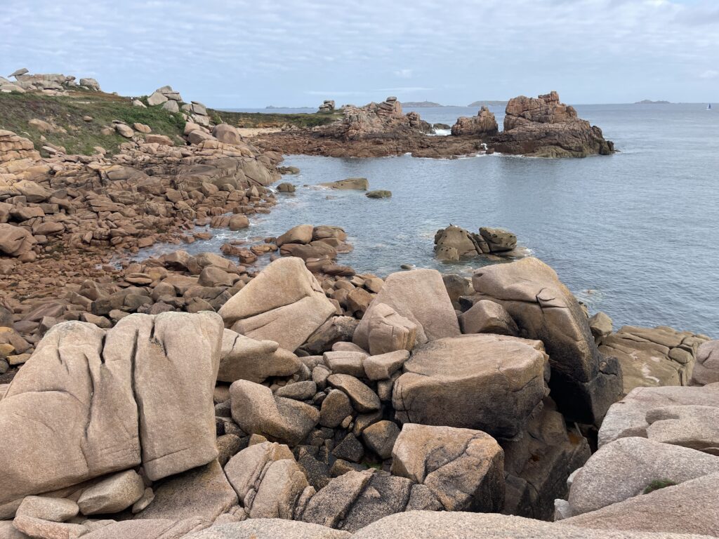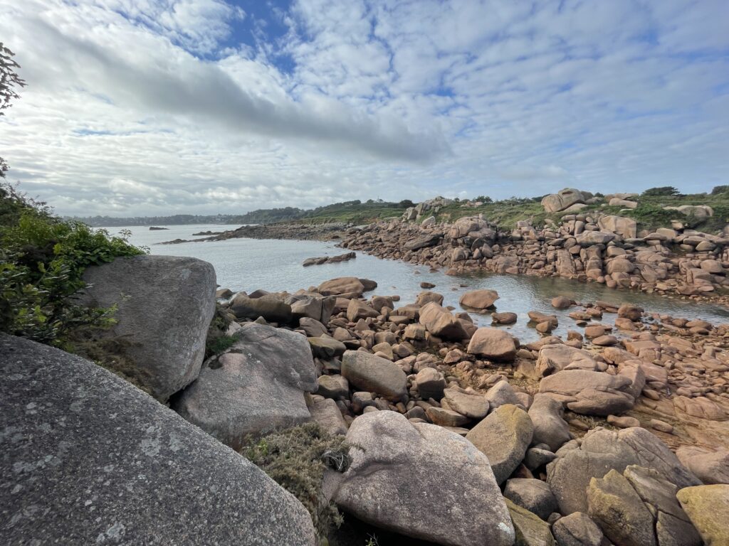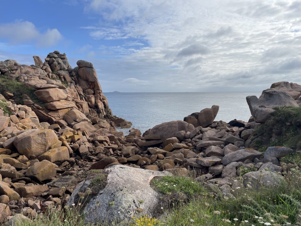 Luki, Micha und ich stehen heute kurz nach 7 Uhr auf, denn wir wollen früh los, um den Zöllnerpfad ‚Sentier des Douaniers‘ und damit einen Teil des 2000km Küstenwanderwegs GR34 zu wandern. Der Einstieg liegt nur wenige Gehminuten vom Campingplatz entfernt. Er verbindet den „Plage de Trestraou“ mit dem Hafen „Port de Ploumanac’h“ und führt entlang der ‚Côte de Granit Rose‘.