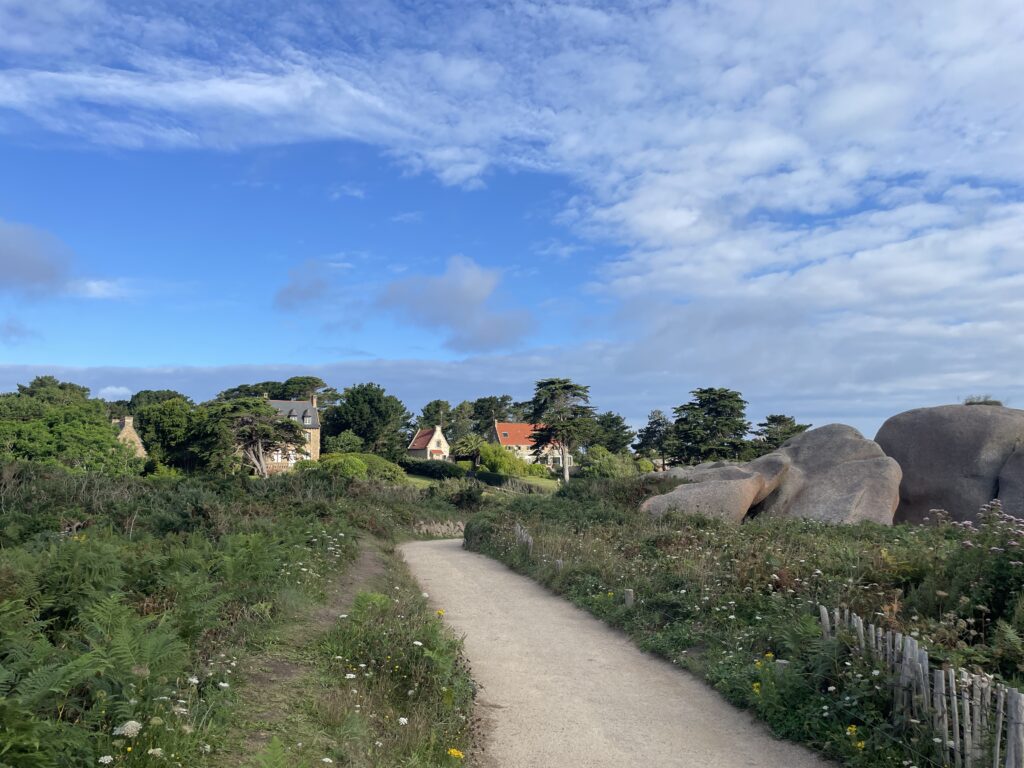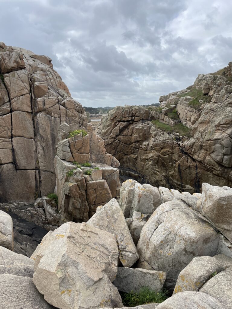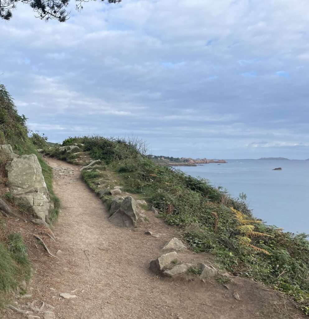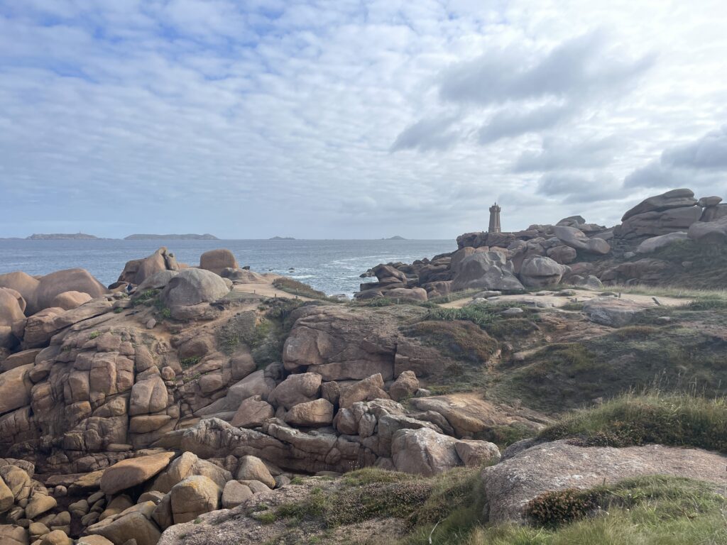Luki, Micha und ich stehen heute kurz nach 7 Uhr auf, denn wir wollen früh los, um den Zöllnerpfad ‚Sentier des Douaniers‘ und damit einen Teil des 2000km Küstenwanderwegs GR34 zu wandern. Der Einstieg liegt nur wenige Gehminuten vom Campingplatz entfernt. Er verbindet den „Plage de Trestraou“ mit dem Hafen „Port de Ploumanac’h“ und führt entlang der ‚Côte de Granit Rose‘.