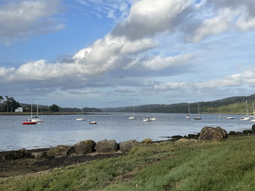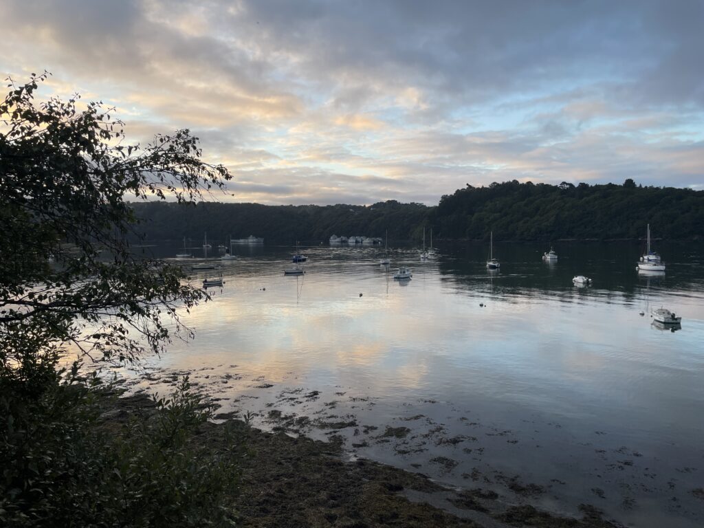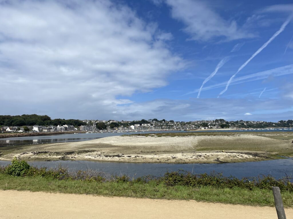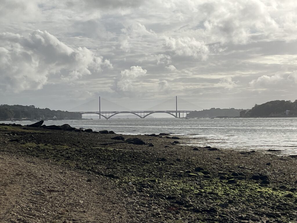 Es ist ein sehr familienfreundlicher Campingplatz mit Kinderprogramm und sonntags Livemusik. Zudem eine Hüpfburg, Trampoline, Basketball- und Fußballplatz und natürlich auch ein Spielplatz. Der Campingplatz liegt direkt am Meeresarm L’Élorn und man kann ein bisschen am Wasser entlang spazieren und von Weitem einen Blick auf die große Autobahnbrücke über das Iroise Meer werfen. Uns gefällt es hier richtig gut. Auch der Empfang war überaus freundlich. Mit der Livemusik an der Bar schlafen wir heute ein.