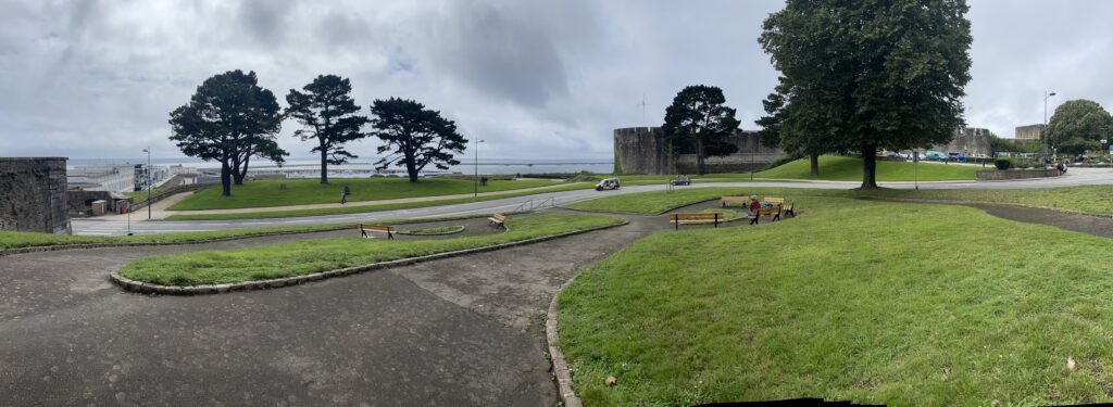 Nachdem die Musik aus ist und die Camper alle ins Bett gegangen sind, war es wunderbar ruhig hier. Irgendwann nachts hat es mal wieder angefangen zu regnen und die Prognose für den Tag ist nicht besser – wie immer, wenn wir ein schönes Plätzchen gefunden haben. Wir verlassen den Campingplatz aber erst gegen Mittag, nachdem die Kinder nochmal im Hallenbad waren und fahren dann nach Brest. Unser eigentlicher Plan: ein Ausflug zur Pointe de Corsen (westlichster Punkt Frankreichs) macht bei diesem Wetter keinen Sinn.