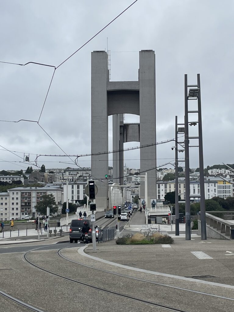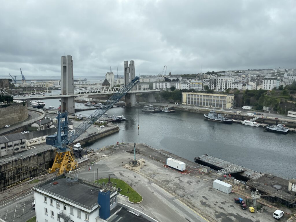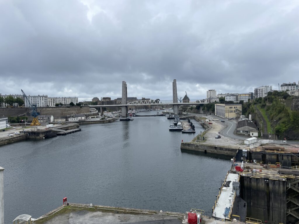 Wir überqueren die gestern von Weitem gesehene Autobahnbrücke und parken wenig später kostenlos in Brests Hafengegend (48.3822, -4.4893 – wenige Plätze für große Wohnmobile) und suchen uns erstmal ein Restaurant zum Mittagessen. Wir wissen, dass die Stadt nicht wirklich sehenswert ist, da sie im Krieg fast vollständig zerstört wurde. Das Château (die Festung) erreichen wir von hier in wenigen Minuten zu Fuß – hier ist das (wohl sehenswerte) Marinemuseum untergebracht. Gleich danach erreicht man die 64m hohe Hubbrücke „Pont de Recouvrance“ und die Innenstadt. ‚