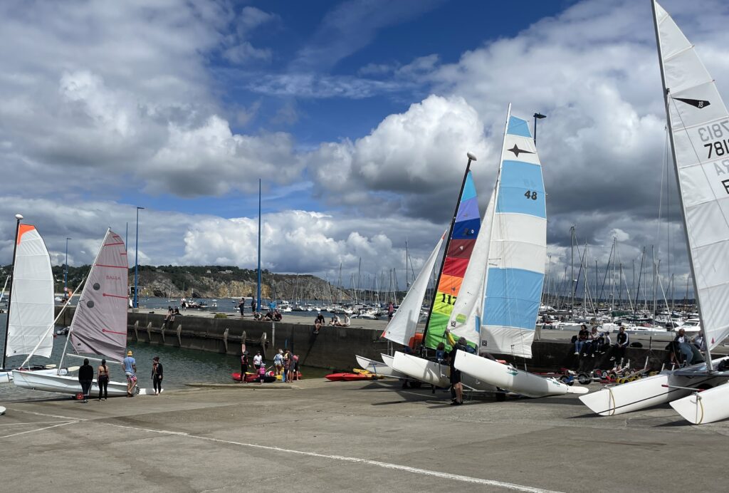 Da es sich leider richtig einregnet, fahren wir nach Saint Brieuc – unser übliches Schlechtwetterprogramm in Frankreich ist, neben dem Auffüllen unserer Vorräte im Supermarkt, ein Besuch bei Decathlon. Auf dem Parkplatz essen wir zu Mittag.