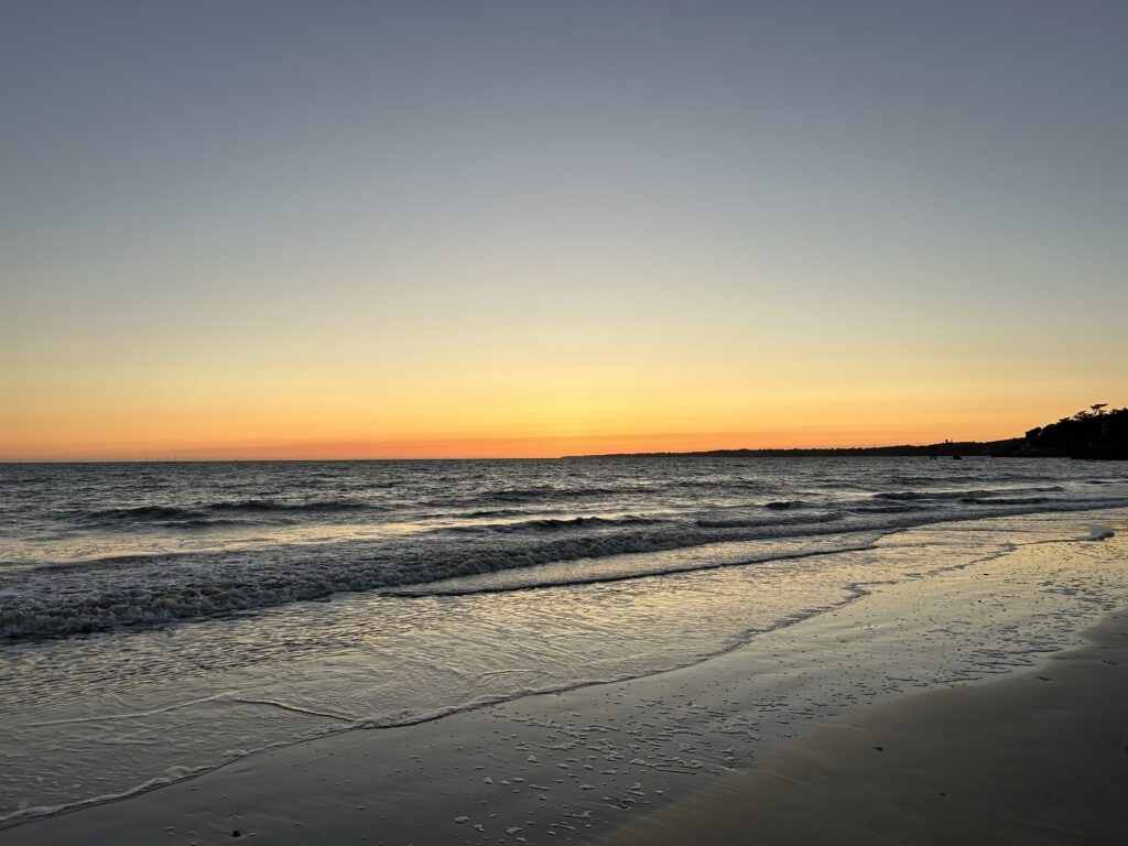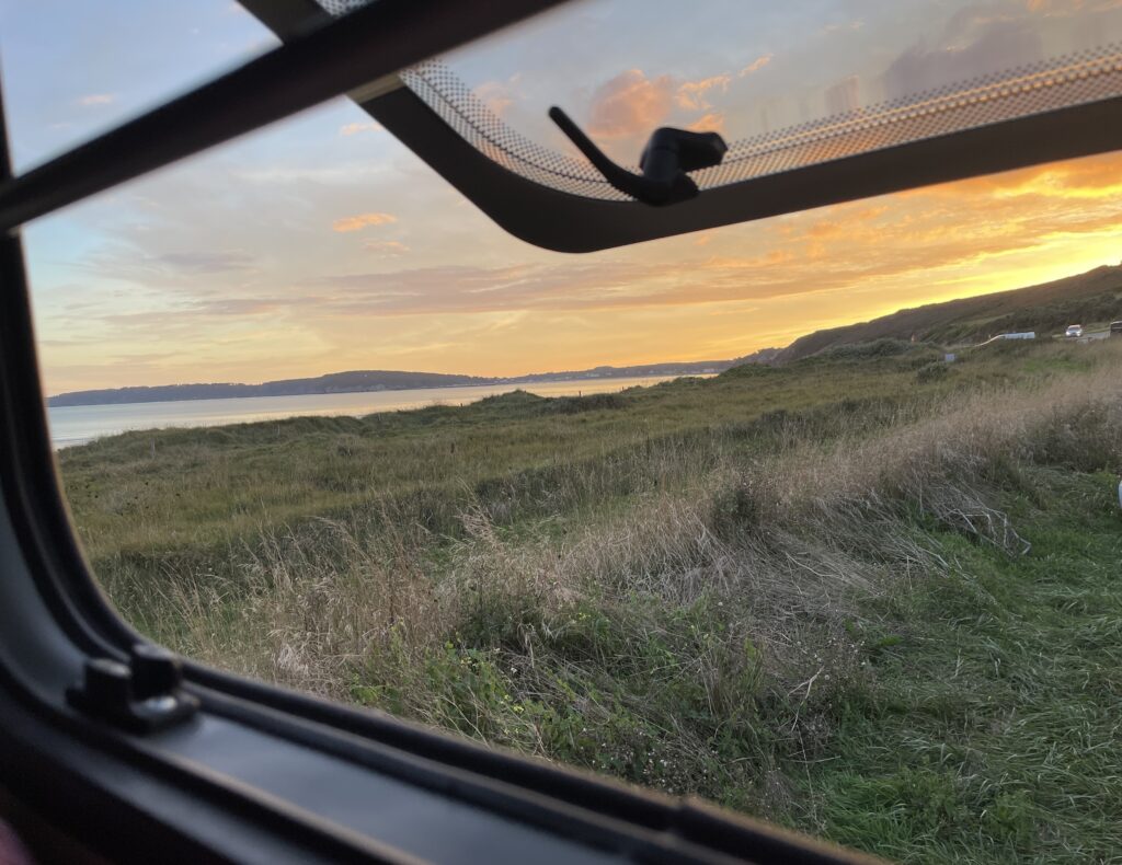 Zum Abendessen geht es dann zurück zum Womo. Wir versuchen uns irgendwie von Sand und Sonnencreme zu befreien, aber mit dem niedrigen Wasserdruck in unserer Dusche ist das vor allem mit langen Haaren sehr schwierig. In der Sonne sitzend lassen wir den Abend ausklingen.