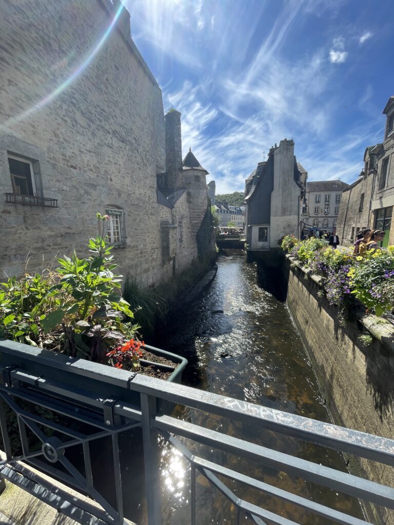 Deshalb verlassen wir nun den Norden der Bretagne und hoffen auf beständigeres Wetter und höhere Temperaturen im südlichen Teil. Wir erreichen das Departement Finistère (lateinisch finis terrae = Ende der Welt, bretonisch = Anfang der Welt). Wir wollen auf dem Womo-Stellplatz in Landerneau übernachten. Hier findet heute allerdings ein Festival statt, deshalb flüchten wir ganz schnell wieder.