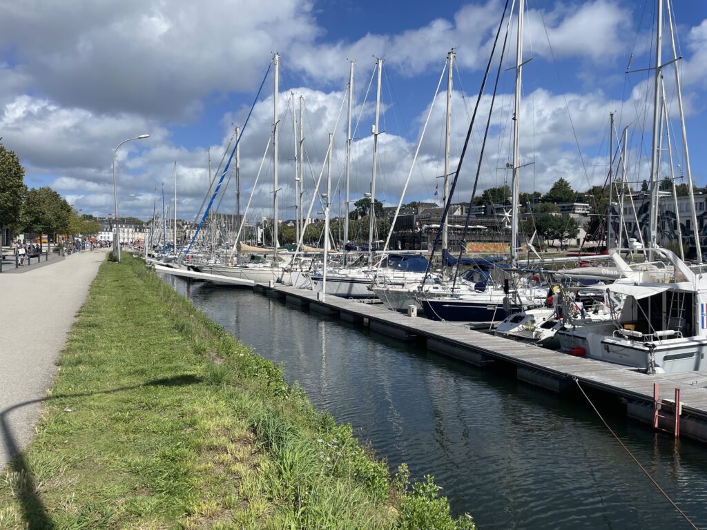 Da die wenigen geeigneten Parkplätze in Hafengegend bereits belegt sind, parken wir im Boulevard du Colonel Rémy am Lycée Professionnel Jean Guehenno. Hier gibt es ein paar kostenlose Längsparkplätze und um die Ecke eine Bushaltestelle der Linie 2. Wir kaufen Tagestickets für 4,20€ und fahren dann die wenige Minuten ins Zentrum (Place de République). Wir teilen uns heute auf. Die Männer und Sofia steigen hier aus, um die Stadt zu erkunden, Jasmin und ich fahren noch weiter bis zum Jachthafen (Le Port). Von dort geht es 2km am Wasser entlang bis zum Hafen Gare Maritime.