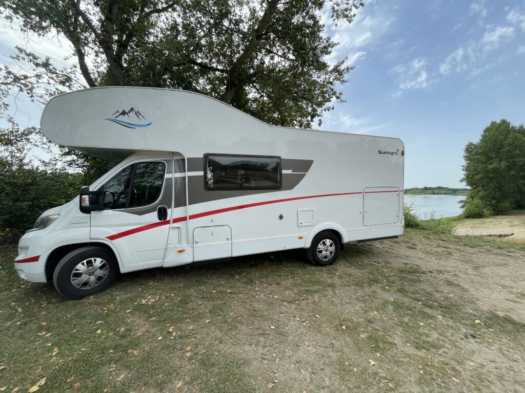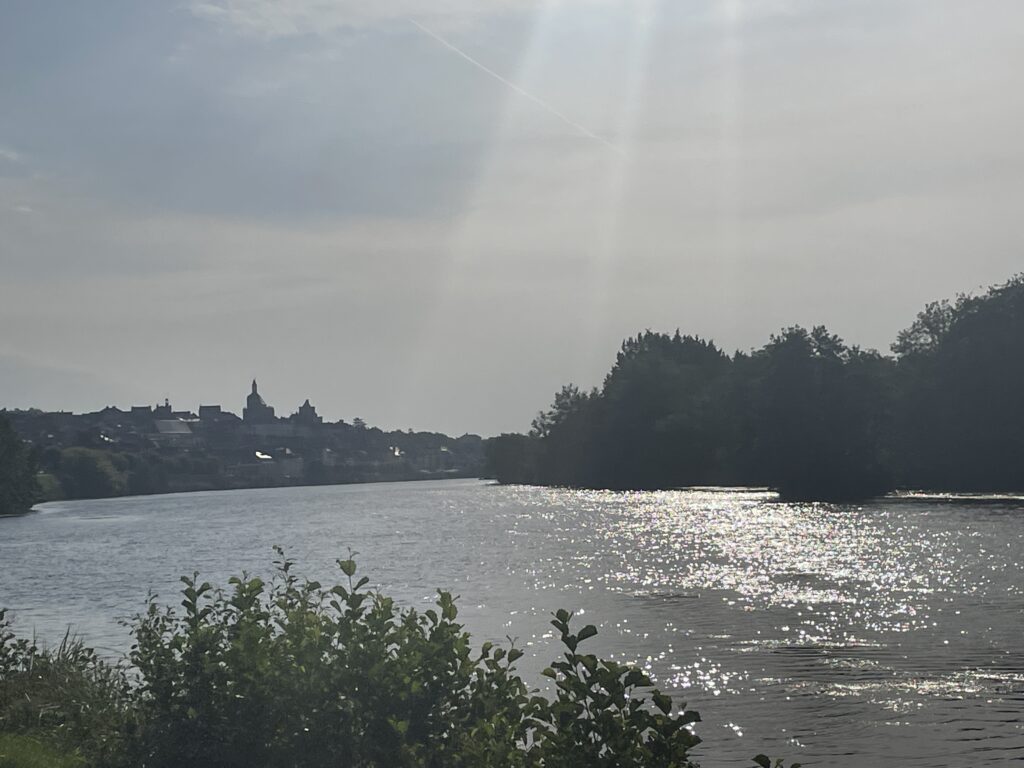 Gegen 11 Uhr passieren wir Nantes und erreichen wieder die kostenpflichtige Autobahn. Schon nach wenigen Kilometern kommt die erste Mautstelle und berechnet uns bereits 23,90€ Gebühren – einfach Wucher. Um 13 Uhr machen wir Mittagspause in Luynes bei Tours (47.3719, 0.5495). Wir parken an der Loire, schattig unter Bäumen mit Picknickbank. Den Schatten brauchen wir auch dringend. Es ist über 30°C heiß und extrem schwül.