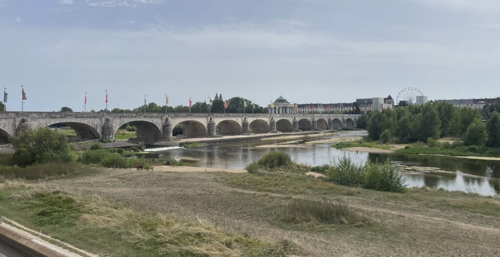Wir folgen der Landstraße am Fluss entlang -vorbei an Tours und den Loire Schlössern Amboise, Chaumont und Blois. Unterwegs versuchen wir irgendwo eine Badestelle an der Loire zu finden, um es etwas abzukühlen – leider vergeblich. Es gibt nur wenige Möglichkeiten an ausgewiesenen Stellen. Ansonsten ist das Gebiet sumpfig, zugewachsen und man kommt an nur wenigen Stellen überhaupt direkt ans Wasser. So geht es für uns in Blois zurück auf die Autobahn – zuvor holen wir uns zur Abkühlung noch ein Eis im Supermarkt und tanken nochmal (die Supermarkttankstellen sind meist am günstigsten – im Schnitt haben wir Diesel für 1,80€/Liter getankt).