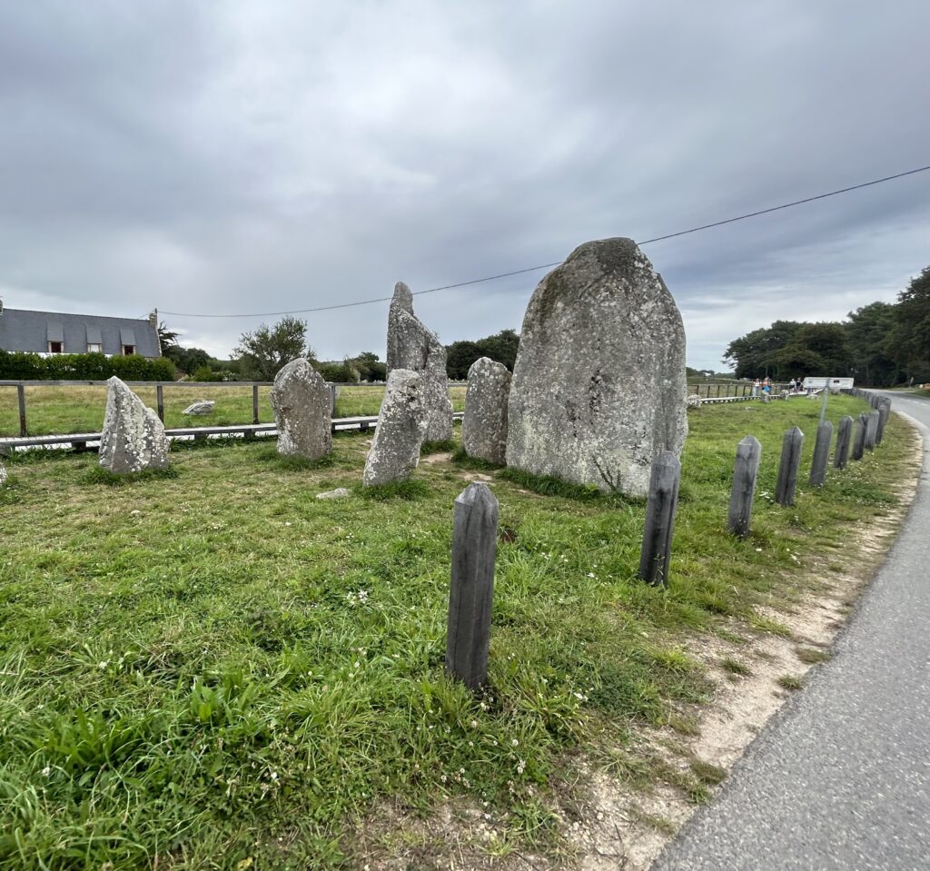 Anschließend erfüllen wir Luki einen großen Wunsch und suchen nach dem Zaubertrank von Astérix und Obelix. Wo sonst könnten wir fündig werden, wenn nicht zwischen den Steinreihen von Carnac. Es gibt hier über 3000 Menhire, die 7000 Jahre alt sind und sich in gleichmäßig angelegten Reihen über 4km Fläche verteilen. Zum Schutz sind diese komplett eingezäunt. Ein Minizug startet am Maison Mégalithes. Für die 55min dauernde Rundfahrt durch Carnac, Carnac Plage, La Trinité-sur-Mer (was uns sehr gut gefällt) und dann endlich vorbei an den 3 großen Steinfeldern kostet inkl. Audioguide 8€ p.P. (Luki 5€). Hat sich wirklich gelohnt.