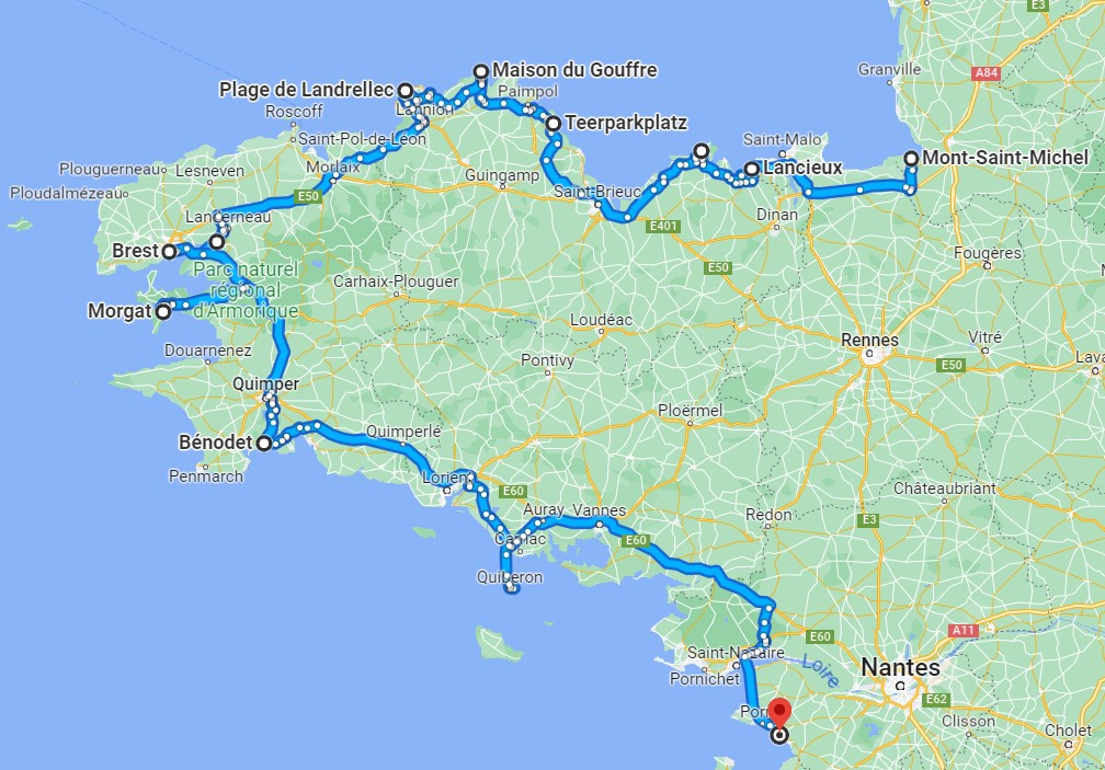 Fazit für Brest: Téléphérique macht Spaß, der Rest nicht. Einzig der Besuch des Marinemuseums oder das große Aquarium Océanopolis wäre evtl. empfehlenswert, allerdings gibt es für zweiteres seit Tagen keine Online Tickets mehr und Schlange stehen im Regen möchte niemand von uns.